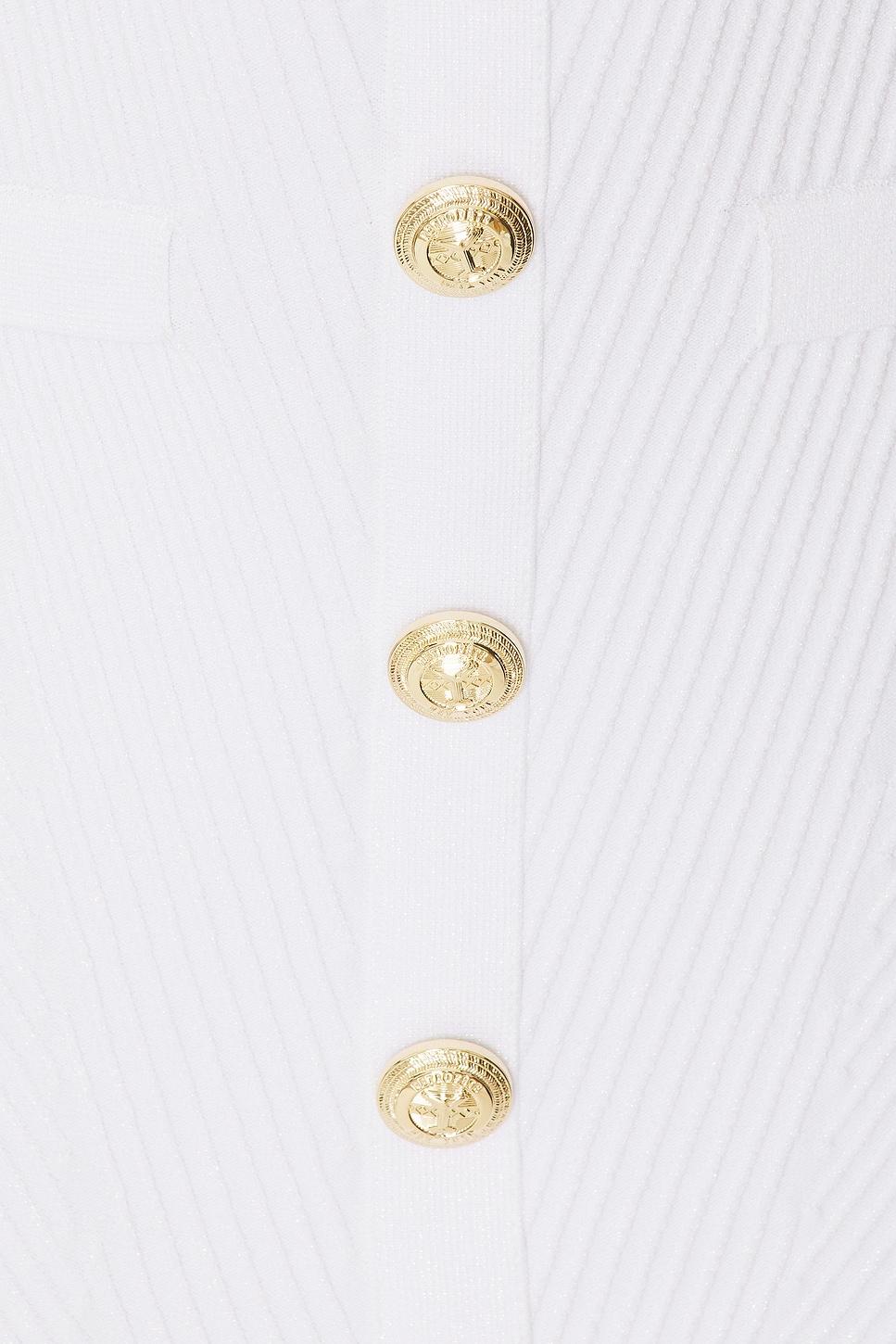 60% rayon, 32% nylon, 3% spandex, 5% metallic. Made in China. Hand wash. Unlined. Pull-on styling. Gold-tone faux buttons and faux front pockets. Midweight knit fabric with metallic detail. Revolve Style No. ROFR-WD936. Manufacturer Style No. SS24-8842.