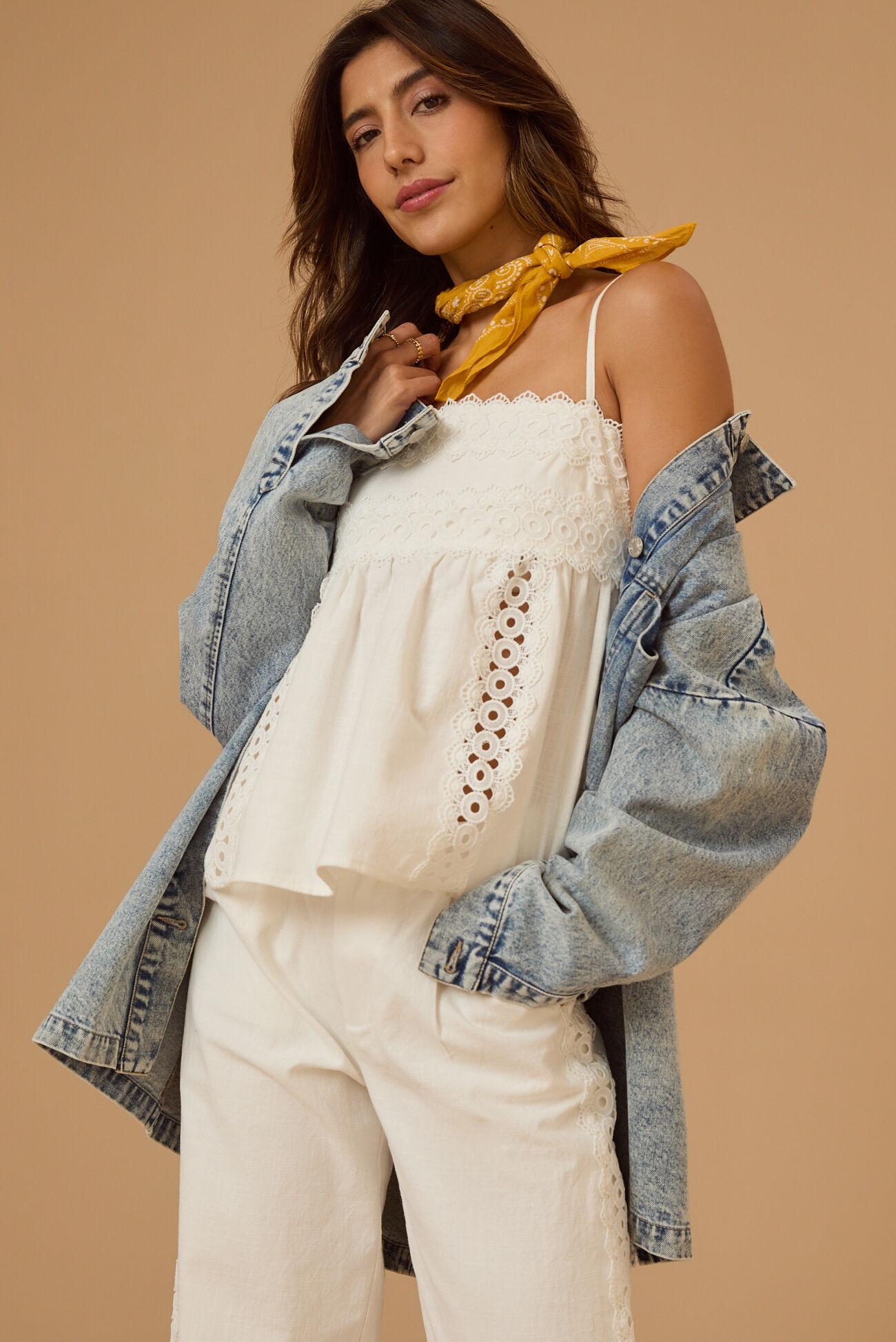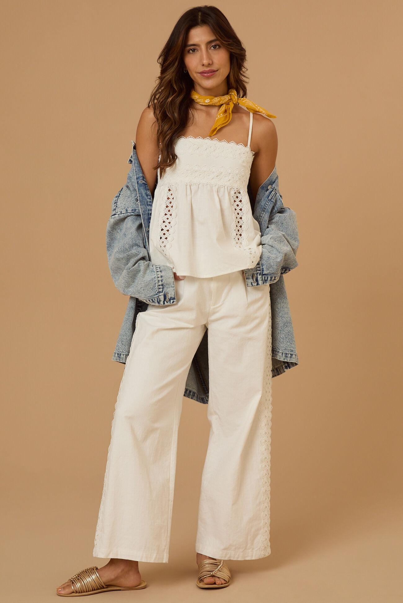 This babydoll tank features delicate crochet details that add a touch of texture and femininity to its relaxed silhouette. Pair it with the matching Elodie Crochet Linen Pant for a beautifully coordinated ensemble that's perfect for warm days and casual outings.