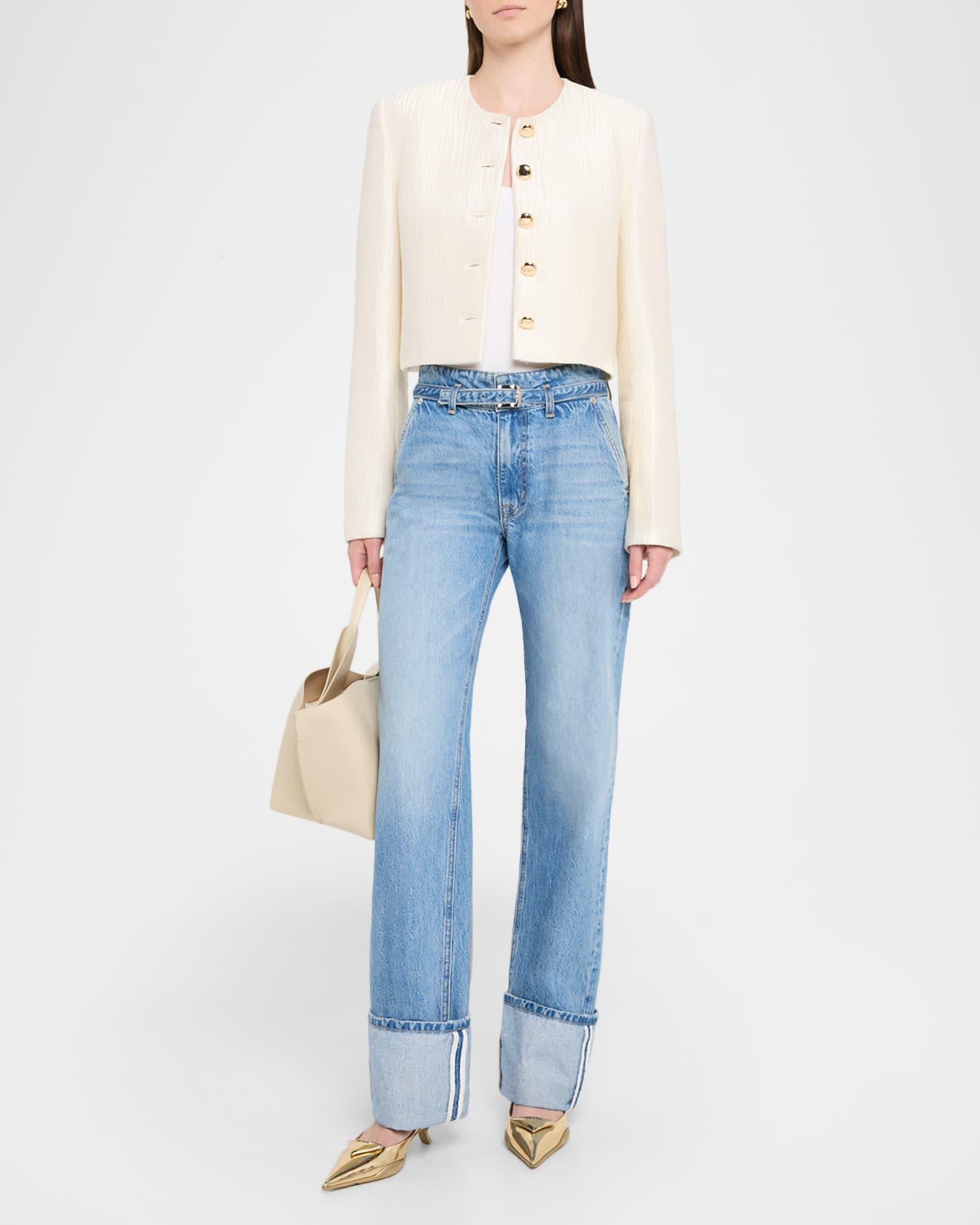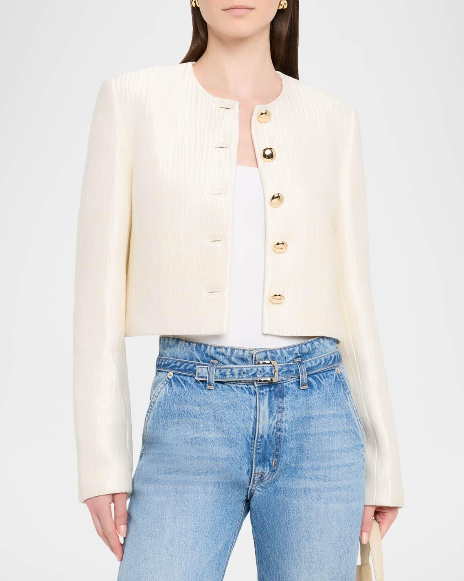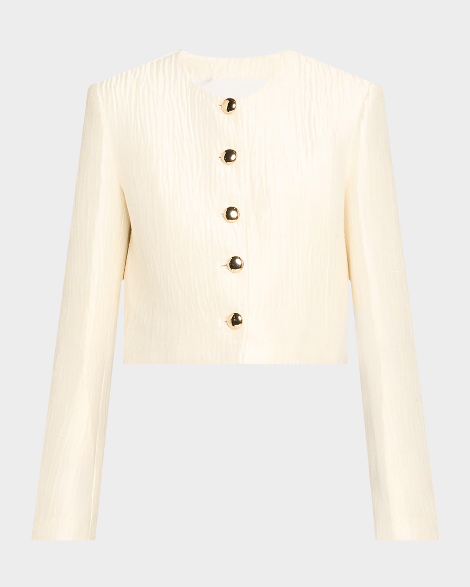 Eloise Single-Breasted Crinkle Silk Box Jacket