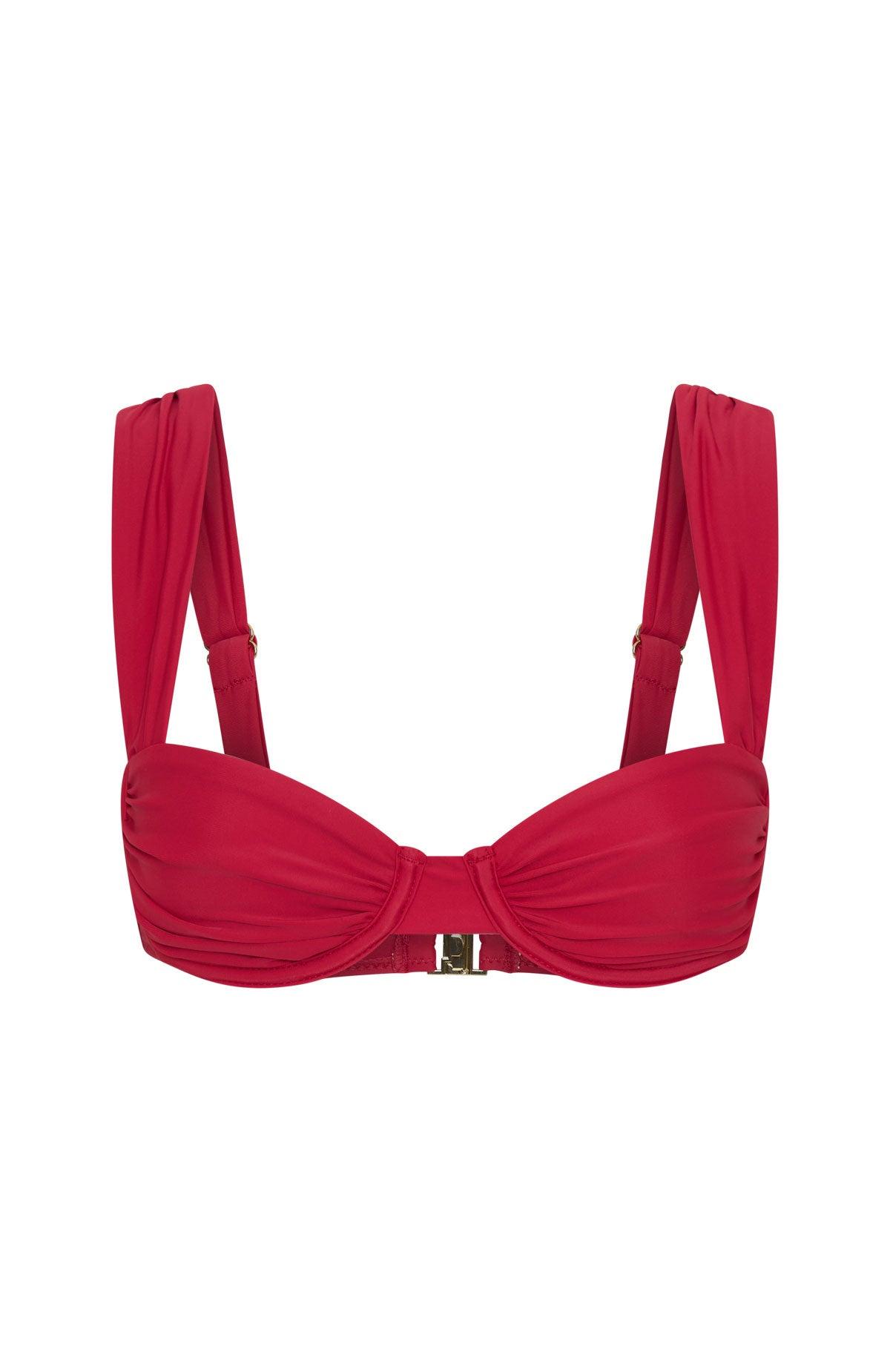 WHITE FOX SWIM The Elouera Bikini Top in CocoCherry Redut pairs perfectly with salty hair and sun-kissed skin. This lined bikini top features thick adjustable straps, underwired bust cups, ruched fabric design and no padding. Pair with one of our matching bikini bottom in Cherry Red for the perfect beach day look. Nat is 173cm & wears an XS Ash is 166cm & wears an XS CUP SIZE RECOMMENDATION: * Please note this is just a recommendation/guide only XS: A-B | S: B-C | M: C-D | L: D-DD
