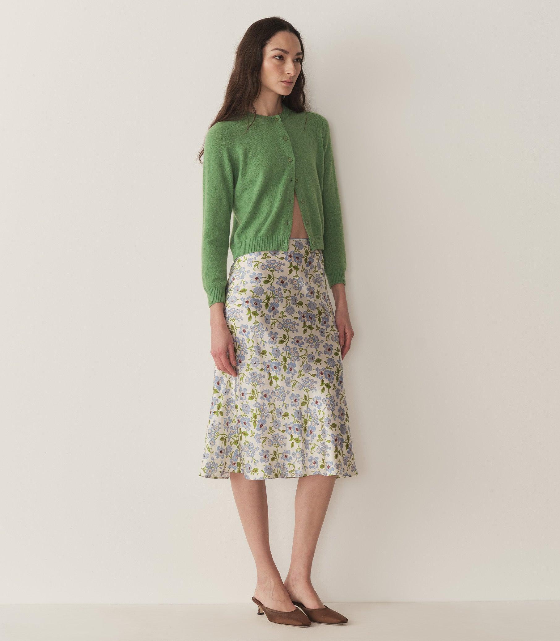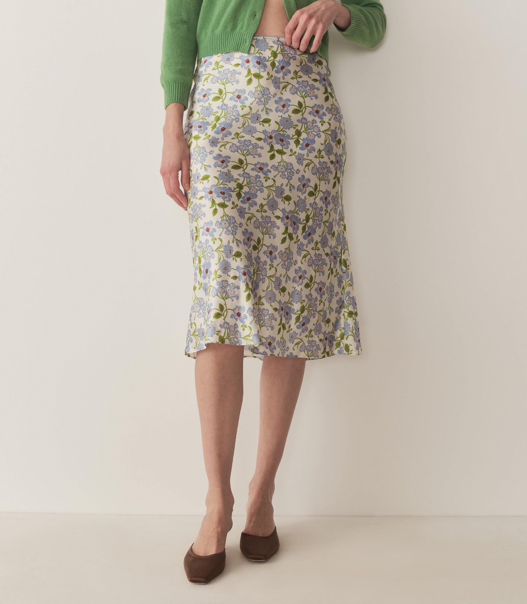 In a buttery silk satin, the Elowena Skirt is reimagined for Spring in our Strawberry Moon Floral, a beloved print we first introduced in 2021. It features a high waist trimmed with elastic scallop detailing and a flowy bias-cut skirt.