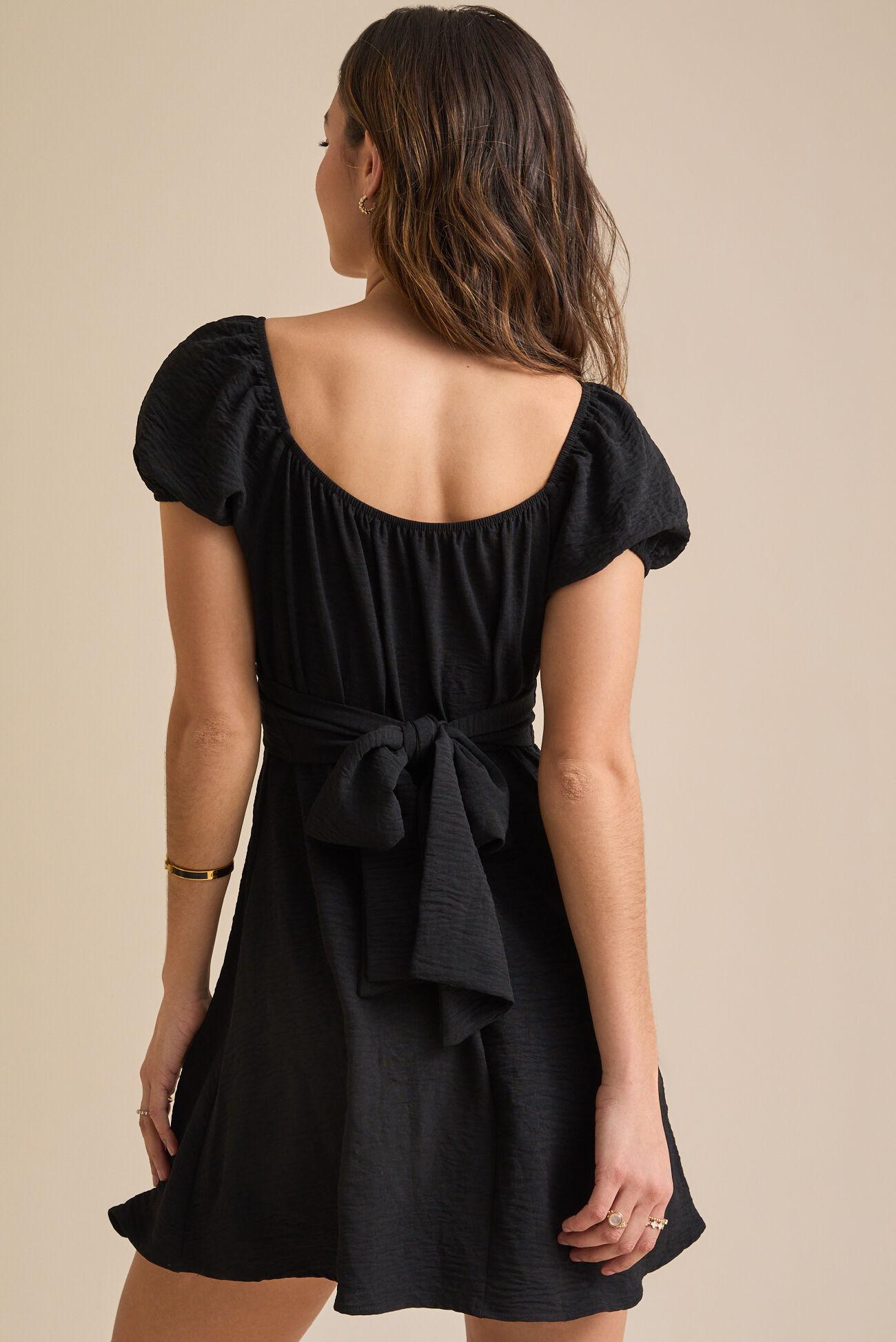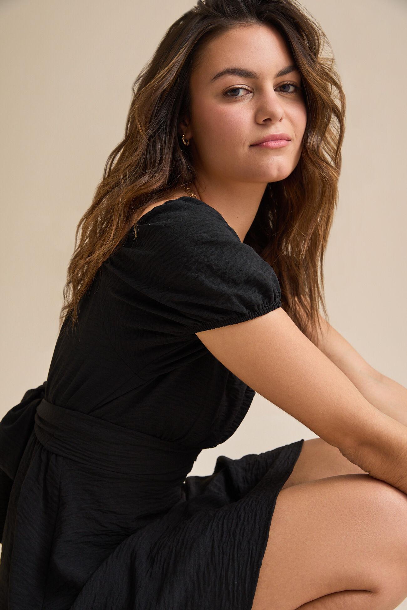 With a flattering crossover waist tie, elastic neckline, and playful puff sleeves, it's the perfect mix of elegant and casual, allowing you to dress it up or down.