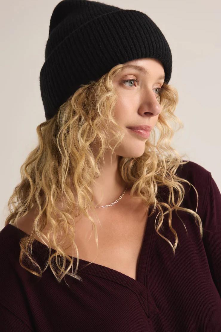 Fitted Ribbed Long Sleeve Henley for Tall Women in Black Female