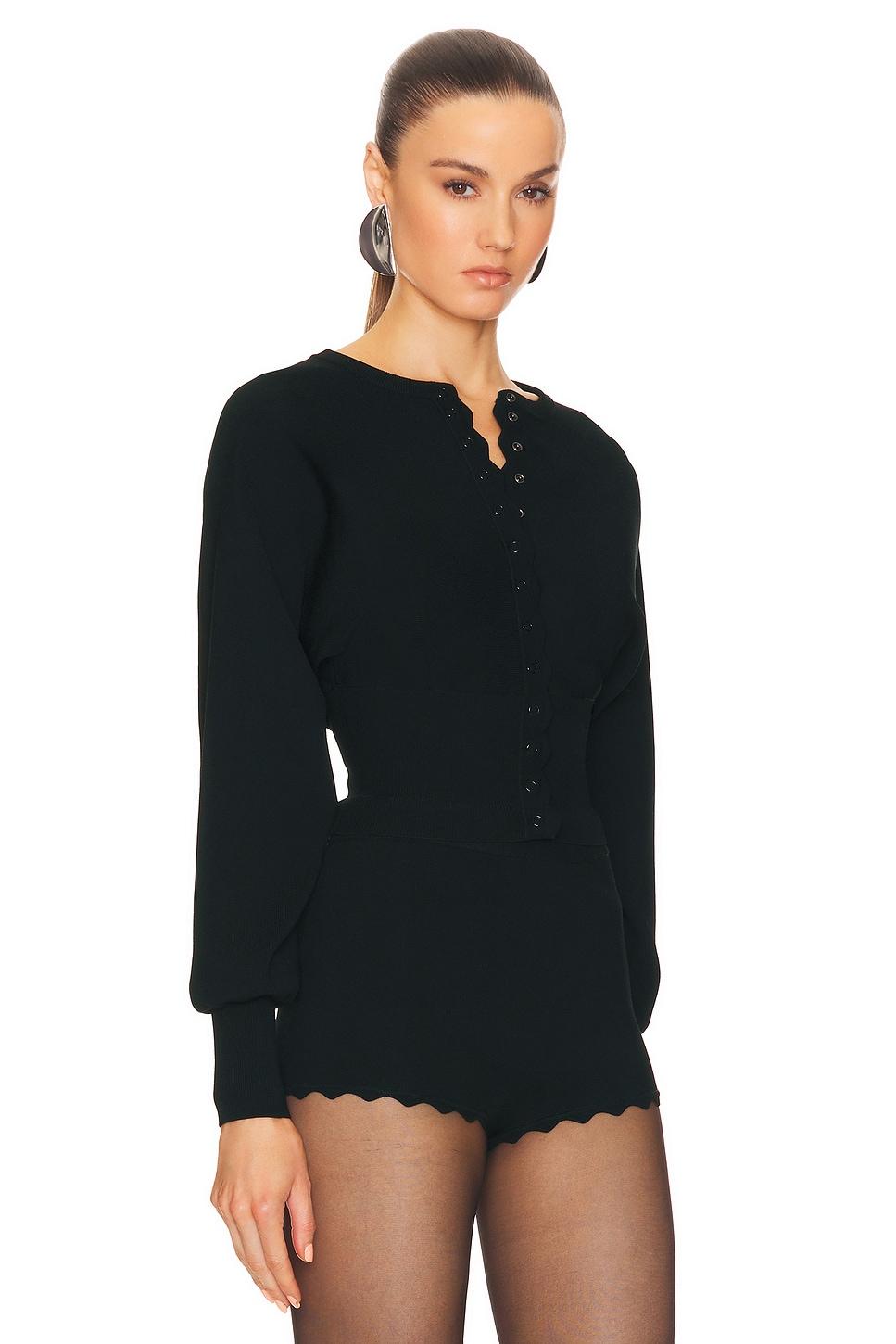 74% viscose, 15% polyester, 9% nylon, 2% elastane. Made in China. Hand wash. Front snap button closure. Cinched waist. Midweight ribbed knit fabric with scalloped trims. Item not sold as a set. Revolve Style No. HLSA-WK37. Manufacturer Style No. HEK46 S24.