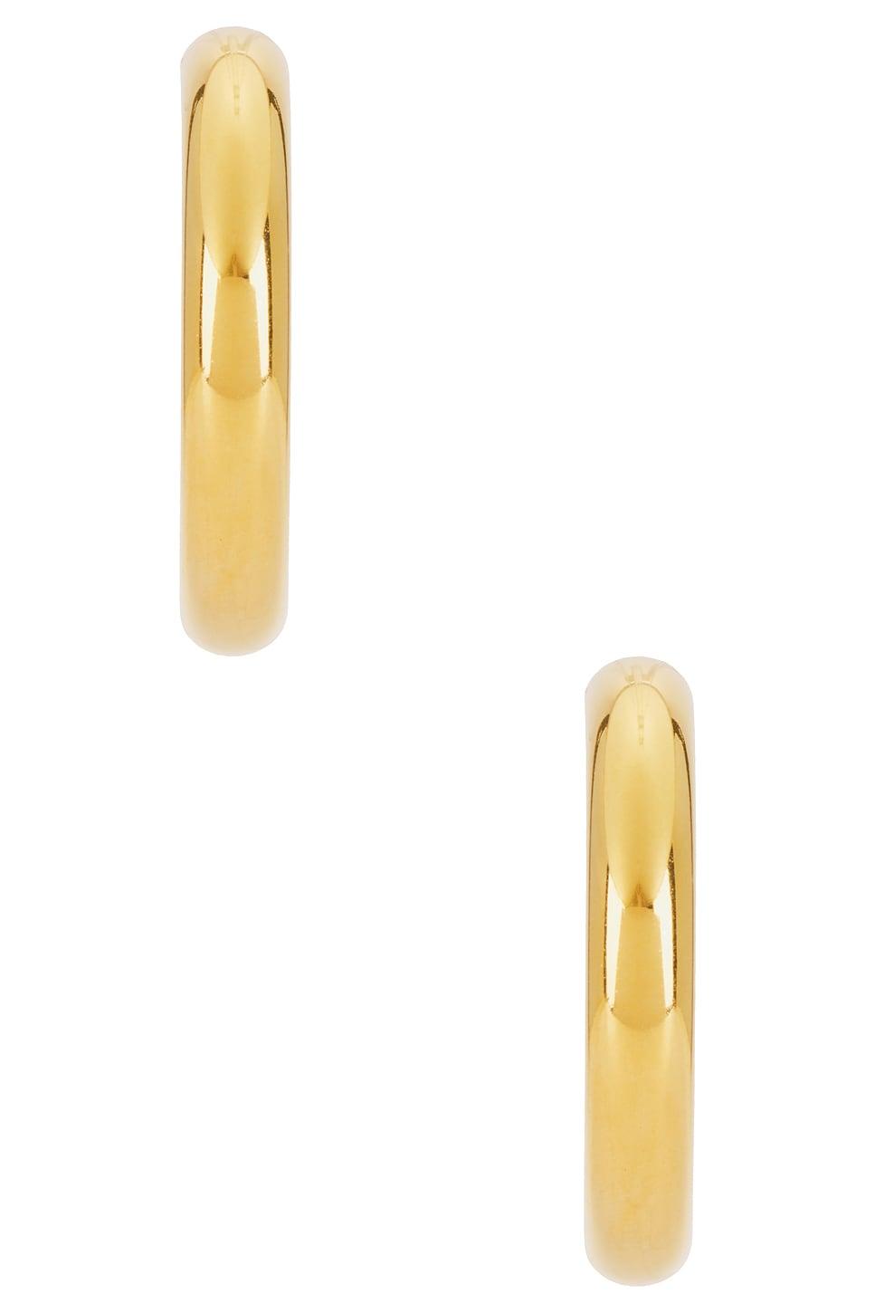 Gold-tone metal hoops. Made in China. Post back closure. Measures approx 1.25" dangling. Revolve Style No. CCLA-WL270. Manufacturer Style No. ELVISGOLD24.