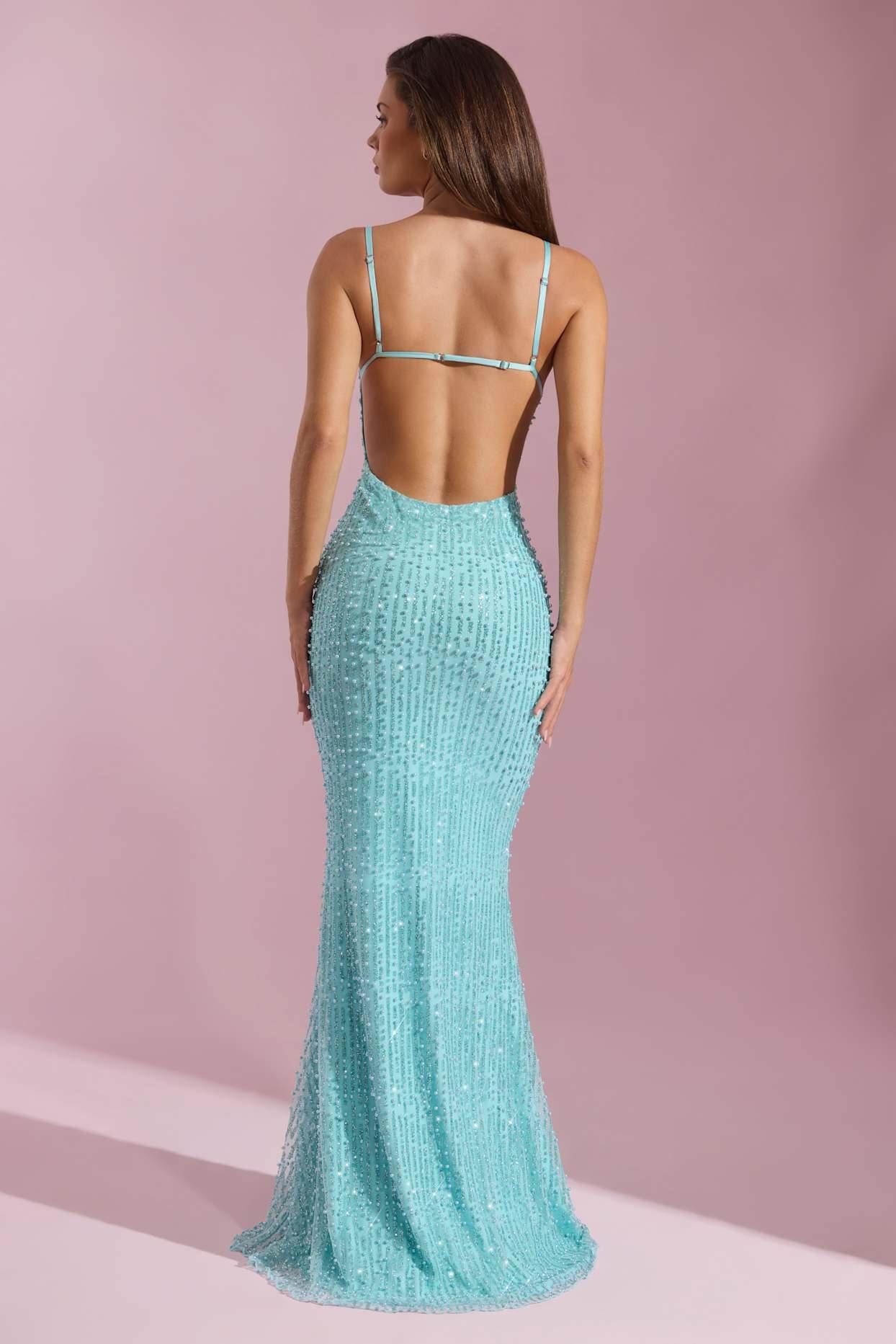 Iconic sparkle. Capturing attention from every angle, the Nivalis maxi dress is crafted from our premium, lightweight glittered mesh fabric overlaid with faceted three-dimensional beads and fully lined for the perfect amount of coverage. It’s framed with a cowl neckline and statement open back with adjustable straps for the perfect fit. Cowl neckAdjustable camisole shoulder strapsAll-over glitter and bead embellishmentOpen back with adjustable strapConcealed side zip fasteningFishtail silhouetteMaxi length, SNP to hem approx. 158cm based on a UK size 8Product code: 14479