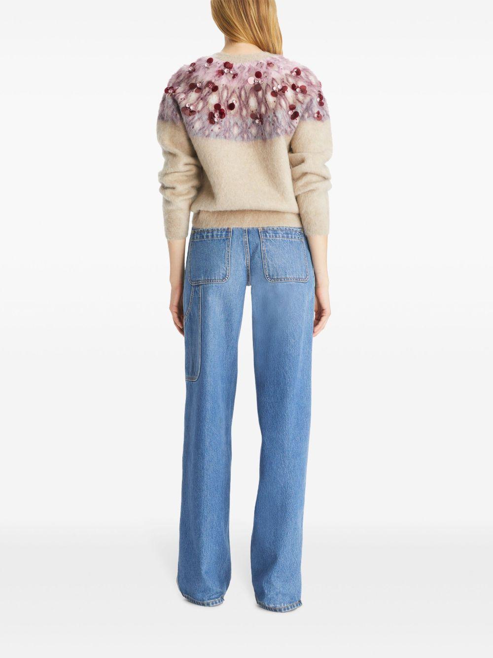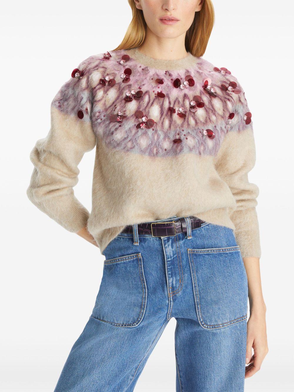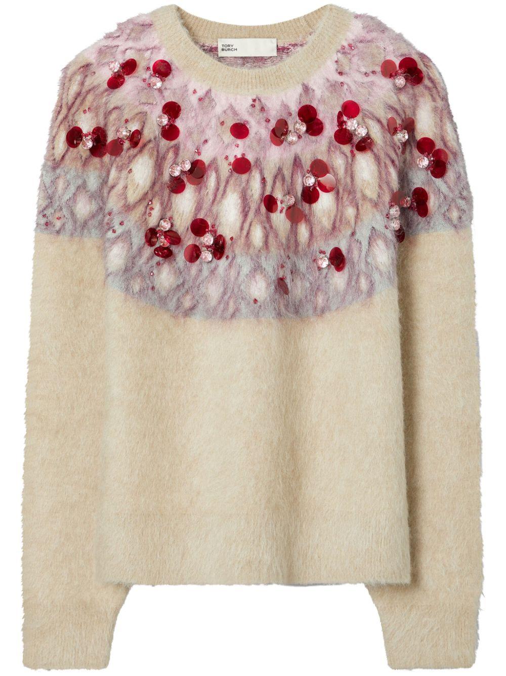 Tory Burch embellished jumper | Neutrals | beige | knitted construction | sequin detailing | crew neck | long sleeves | Sequin/Wool/Polyamide/Mohair/Cashmere | Knitted Sweaters | Knits | Clothing | Women