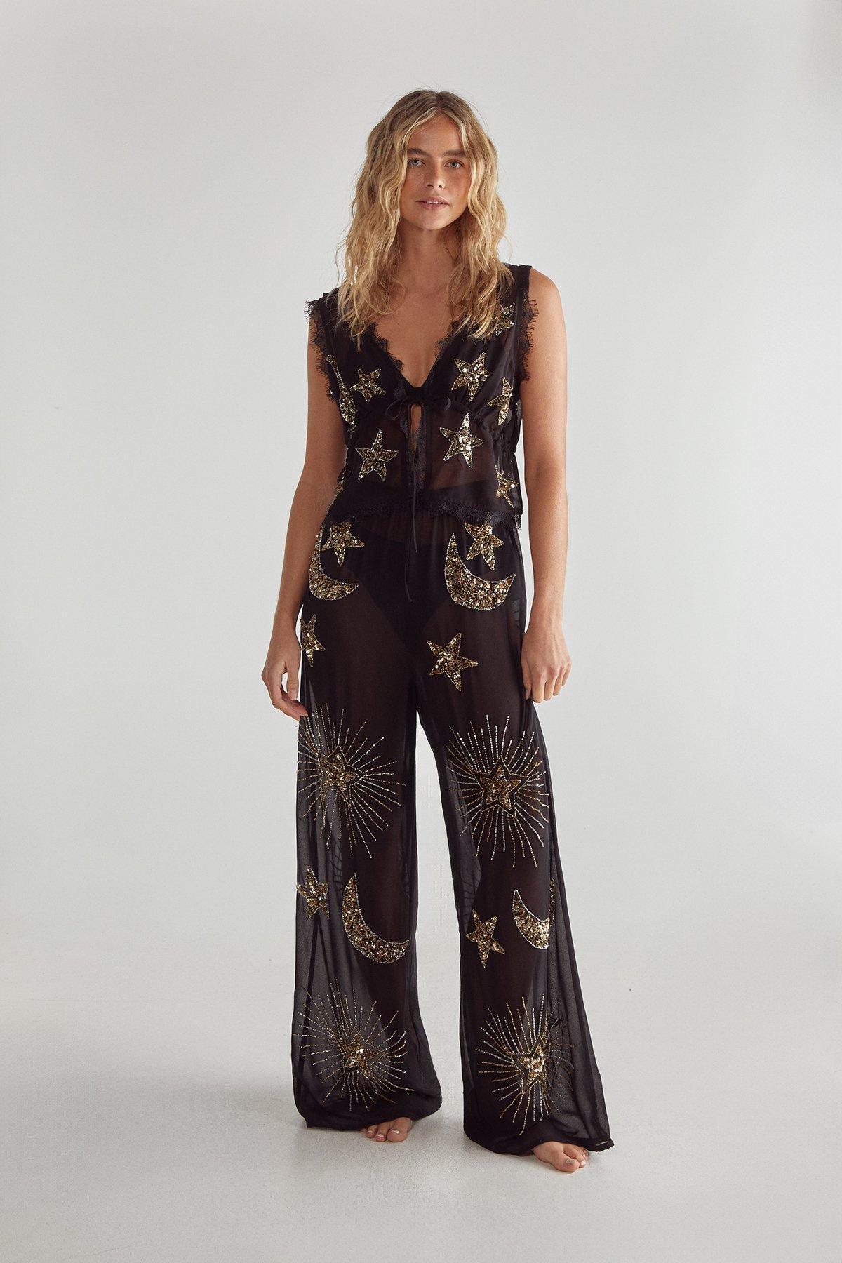Embellished Moon & Star Tie Front Beach Waistcoat