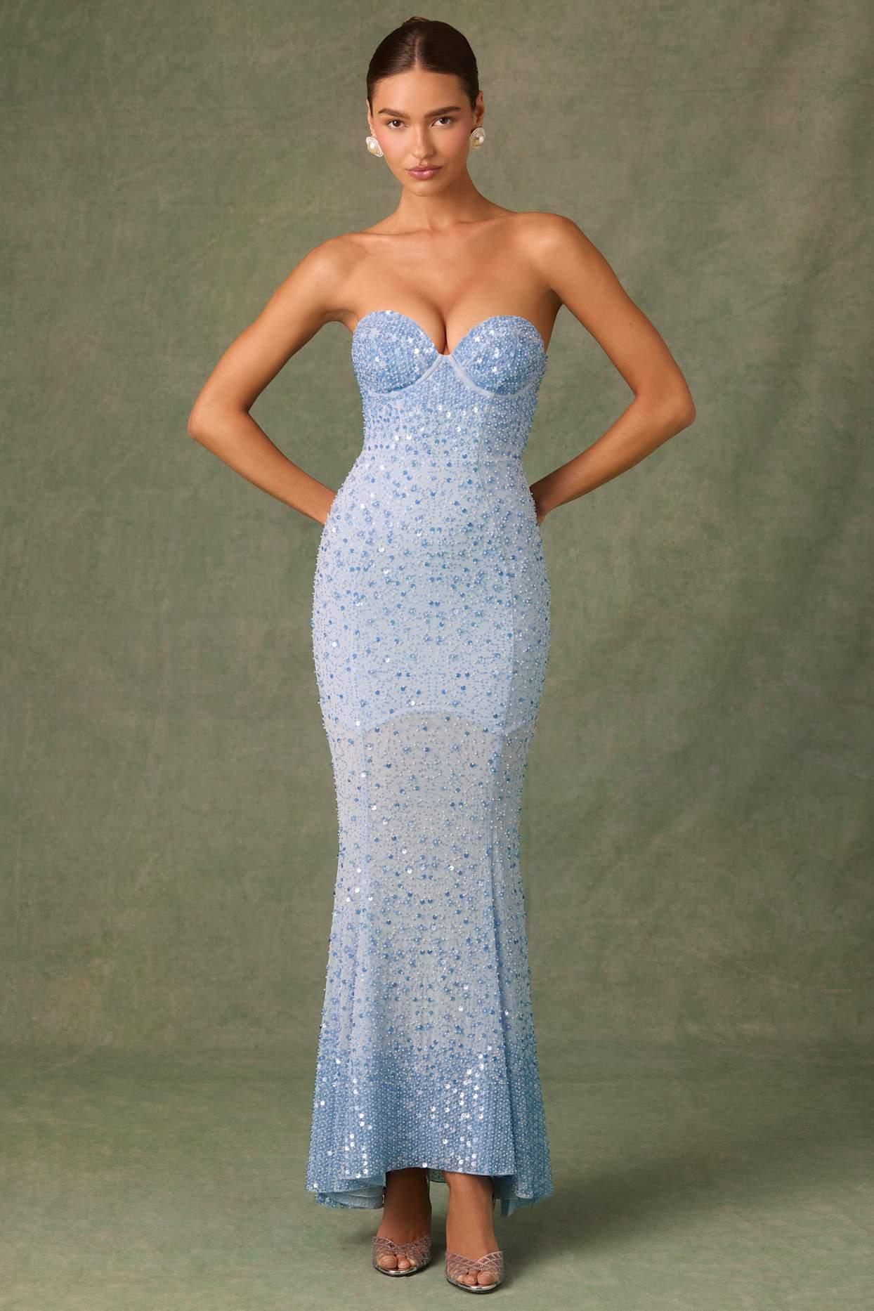 For your most memorable moments. First seen on the runway, the Vesna gown is an extra-special silhouette, crafted from our signature figure-defining mesh with a power mesh lining to highlight your curves. It’s cut to a fishtail silhouette, features wired corsetry-inspired cups for enhanced support, and is delicately embellished with tonal abstract sequins and beads, each perfectly placed for maximum impact and sparkle. Bandeau sweetheart neckDetachable, adjustable camisole shoulder strapsInternal silicone grip tape and wired cups for enhanced holdAll-over custom bead and sequin embellishment Contouring princess seams Semi-sheer panelling at skirtConcealed side zip fasteningFishtail silhouetteNo bra needed. This piece has moulded cups for enhanced supportMaxi length, SNP to hem approx. 156cm based on a UK size 8Product code: 13122We pride ourselves on quality and owning every step of production because you deserve the best.