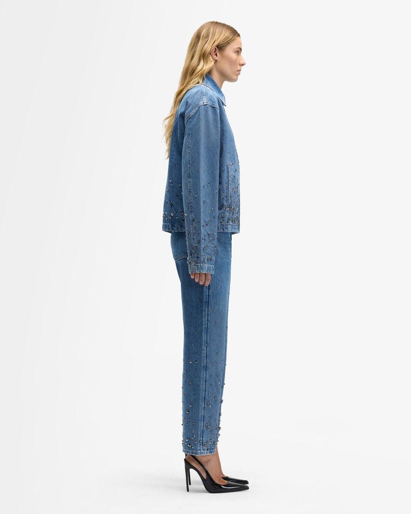 Fits like: Relaxed through the body with a boxy, slightly cropped shape that layers with ease. Dropped shoulders and wide sleeves lend it a cool, unstructured feel.Feels like: A grounded, structured denim that develops softness and character with every wear. The Details: Medium wash Classic point collar Metallic stud a