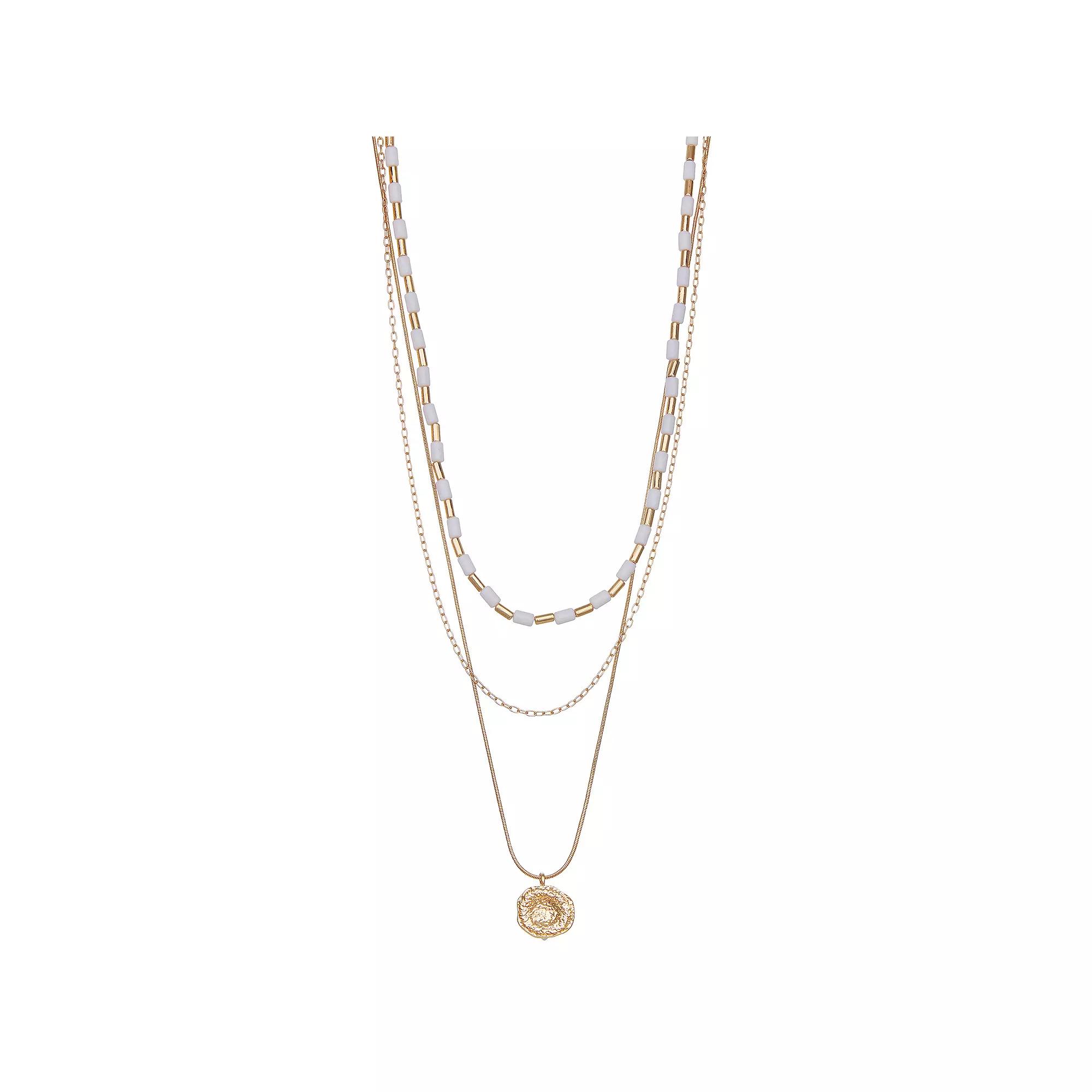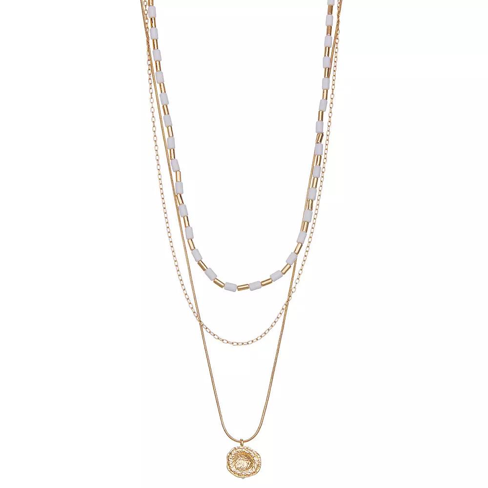 Enhance your look with this Emberly Gold Tone Color Block Layered Necklace. Click on this JEWELRY & WATCHES GUIDE to learn about fit, styles, materials and more! Enhance your look with this Emberly Gold Tone Color Block Layered Necklace. Click on this JEWELRY & WATCHES GUIDE to learn about fit, styles, materials and more! FEATURES Shortest chain length: 16-in. Longest chain length: 21-in. Clasp: lobster-claw Metal: alloy, brass, iron Material: plastic Plating: gold tone Finish: polished Packaging: decorative card Imported Size: One Size. Color: White. Gender: female. Age Group: adult.
