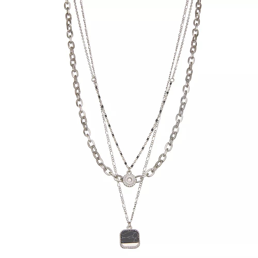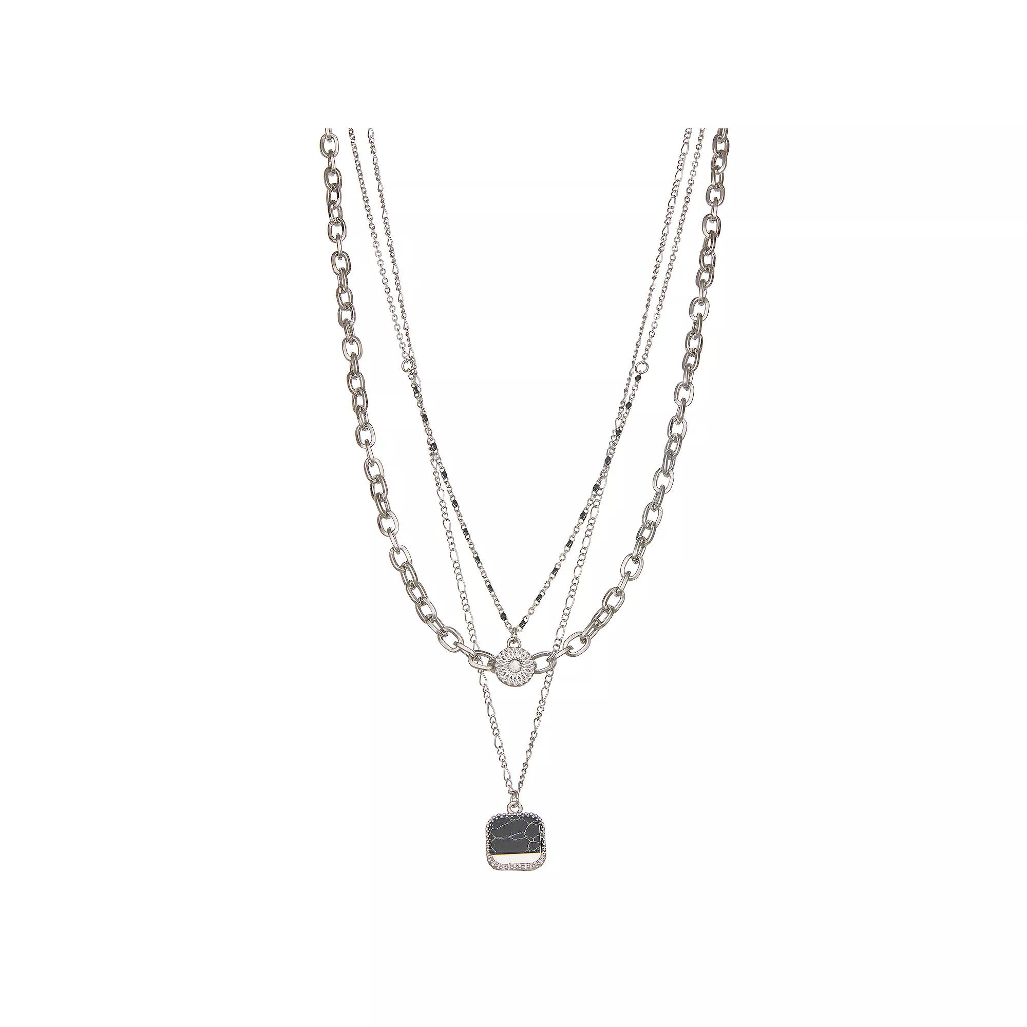 Enhance your look with this Emberly Layered Charms Necklace. Click on this JEWELRY & WATCHES GUIDE to learn about fit, styles, materials and more! Enhance your look with this Emberly Layered Charms Necklace. Click on this JEWELRY & WATCHES GUIDE to learn about fit, styles, materials and more! FEATURES Chain length: 14 in., 16 in., 18 in. Clasp: lobster-claw Metal: alloy, iron Material: howlite stone, epoxy, reconstituted stone Plating: gold tone, silver tone Finish: polished Packaging: decorative card Imported Includes: 3 chain necklaces Size: One Size. Color: None. Gender: female. Age Group: adult.