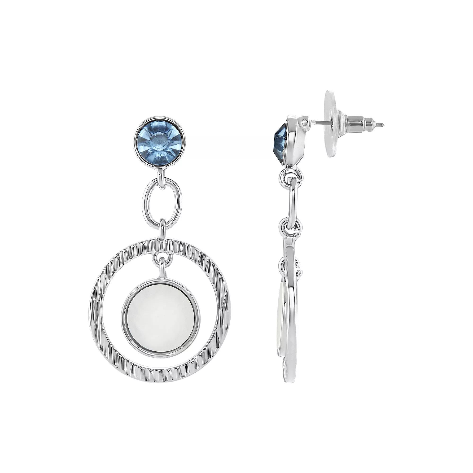 Accent your look with these Emberly Silver Tone Blue Glass Stone & Simulated Mother-of-Pearl Circle Drop Earrings. Click on this JEWELRY & WATCHES GUIDE to learn about fit, styles, materials and more! Accent your look with these Emberly Silver Tone Blue Glass Stone & Simulated Mother-of-Pearl Circle Drop Earrings. Click on this JEWELRY & WATCHES GUIDE to learn about fit, styles, materials and more! FEATURES Length: 47 mm Backings: post Nickel free Metal: zinc Material: glass, resin Plating: silver tone Finish: polished, textured Packaging: decorative card Not appropriate for children 14 years old and younger. Size: One Size. Color: Multi Blue. Gender: female. Age Group: adult.