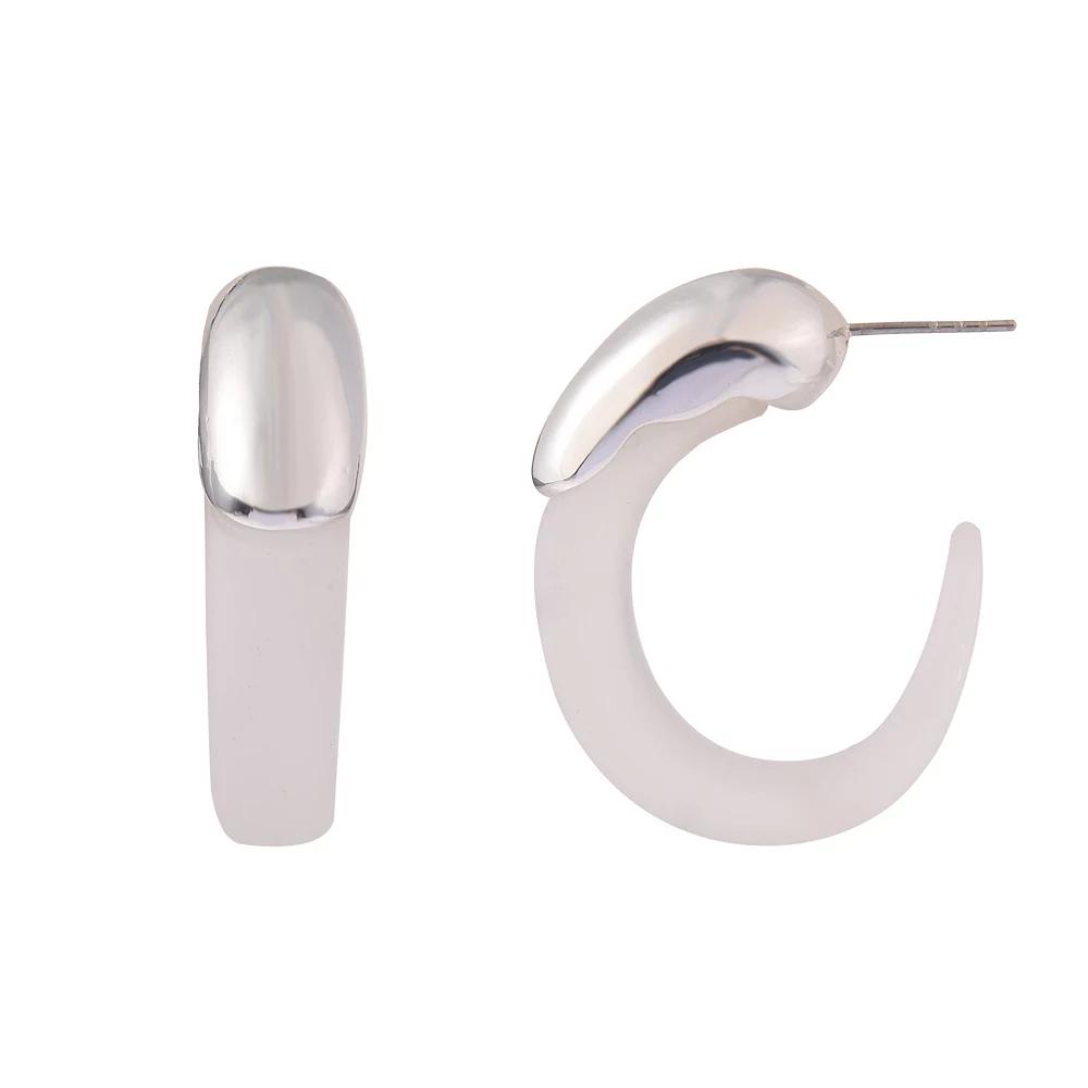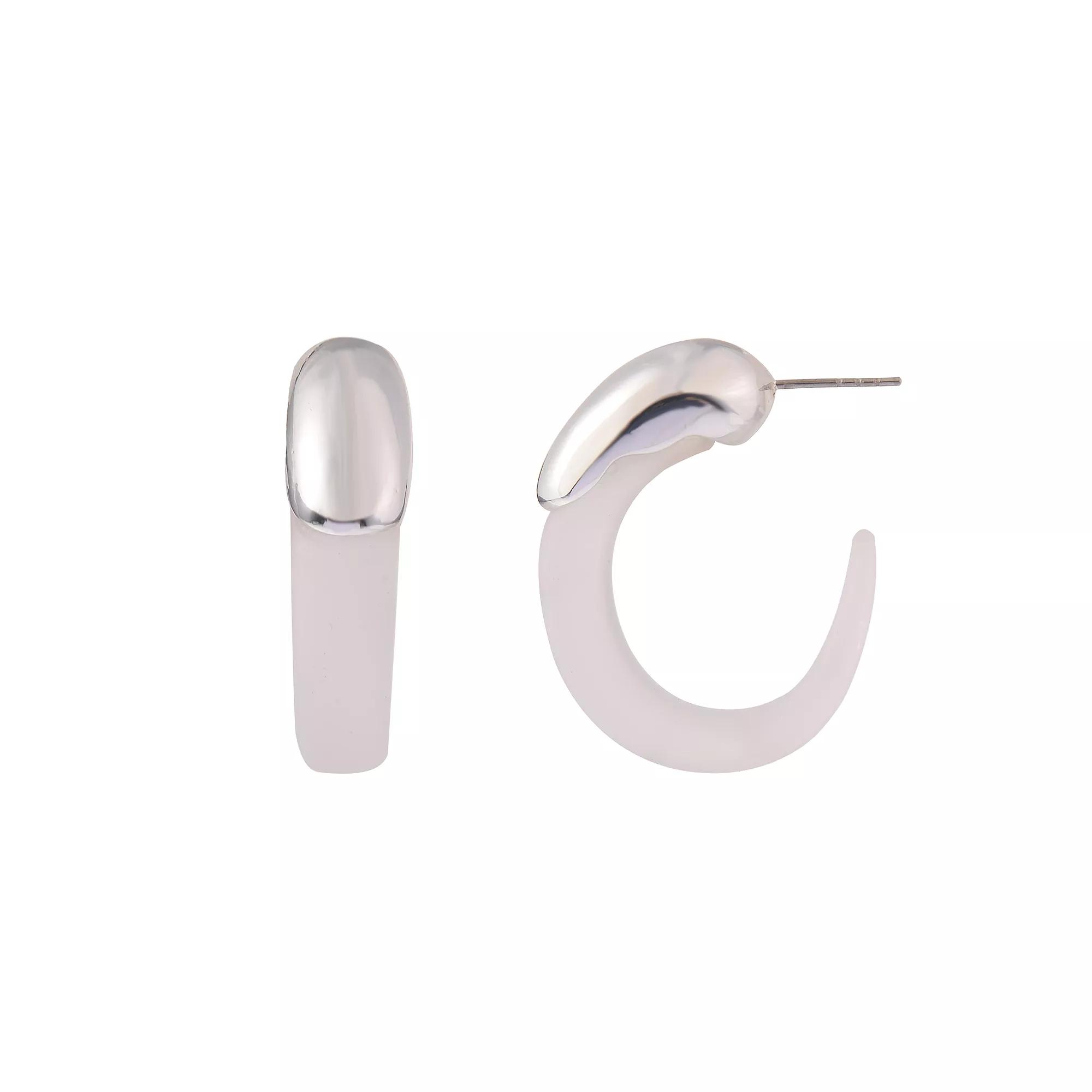 These beautiful silver tone lucite hoop earrings from Emberly are sure to be a new favorite in any jewelry collection. Click on this JEWELRY & WATCHES GUIDE to learn about fit, styles, materials and more! These beautiful silver tone lucite hoop earrings from Emberly are sure to be a new favorite in any jewelry collection. Click on this JEWELRY & WATCHES GUIDE to learn about fit, styles, materials and more! FEATURES Earring size: 34 mm x 28 mm Backings: post Nickel free Metal: zinc Material: acrylic Plating: silver tone Finish: polished Imported Not appropriate for children 14 years old and younger. Size: One Size. Color: Clear. Gender: female. Age Group: adult.