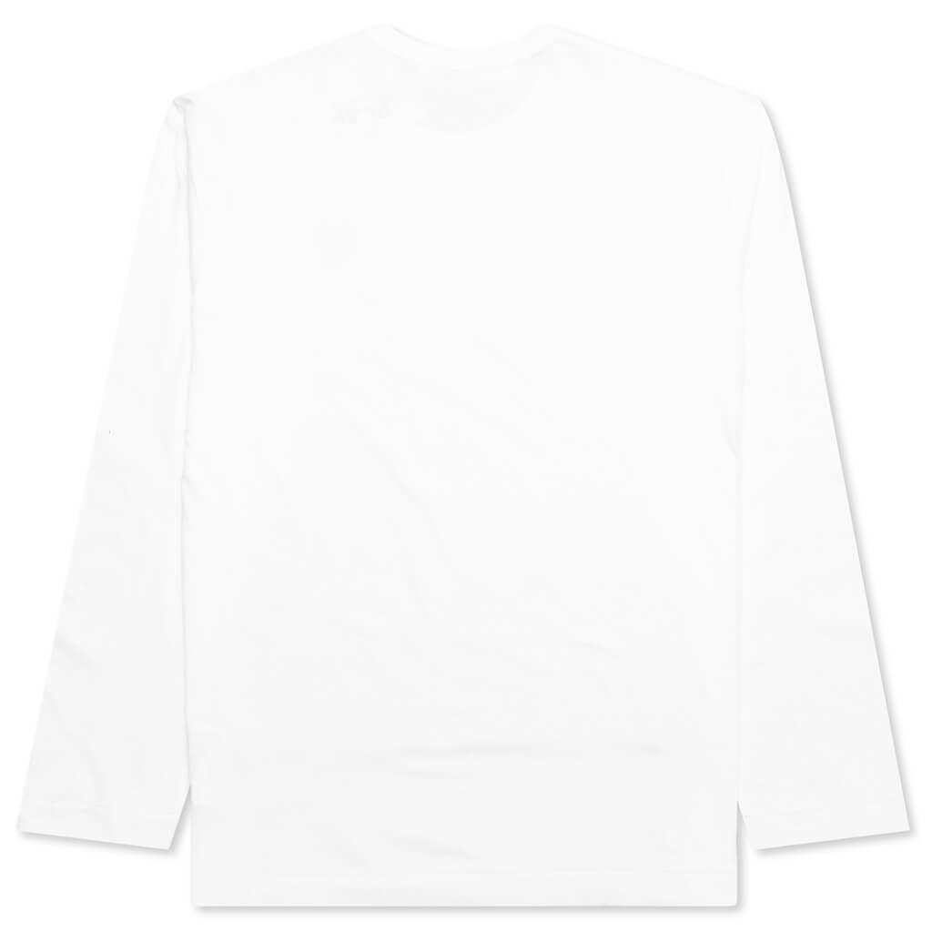 The concept of the Comme des Garcons PLAY line is design by not designing. Characterized by the iconic red heart logo designed by artist Filip Pagowski, the line is a collection of unisex basics, fragrances, and footwear for those who enjoy simplicity. Pictured is the Comme des Garcons PLAY Black Emblem Long Sleeve T-Shirt in White. AZ T118 051 2 COMME DES GARCONS PLAY APPAREL HAS A SMALLER FIT, WE RECOMMEND SIZING UP. 100% cotton Ribbed collar Embroidered branding Made in Japan Style no: AZ-T118-051-2 condition: new