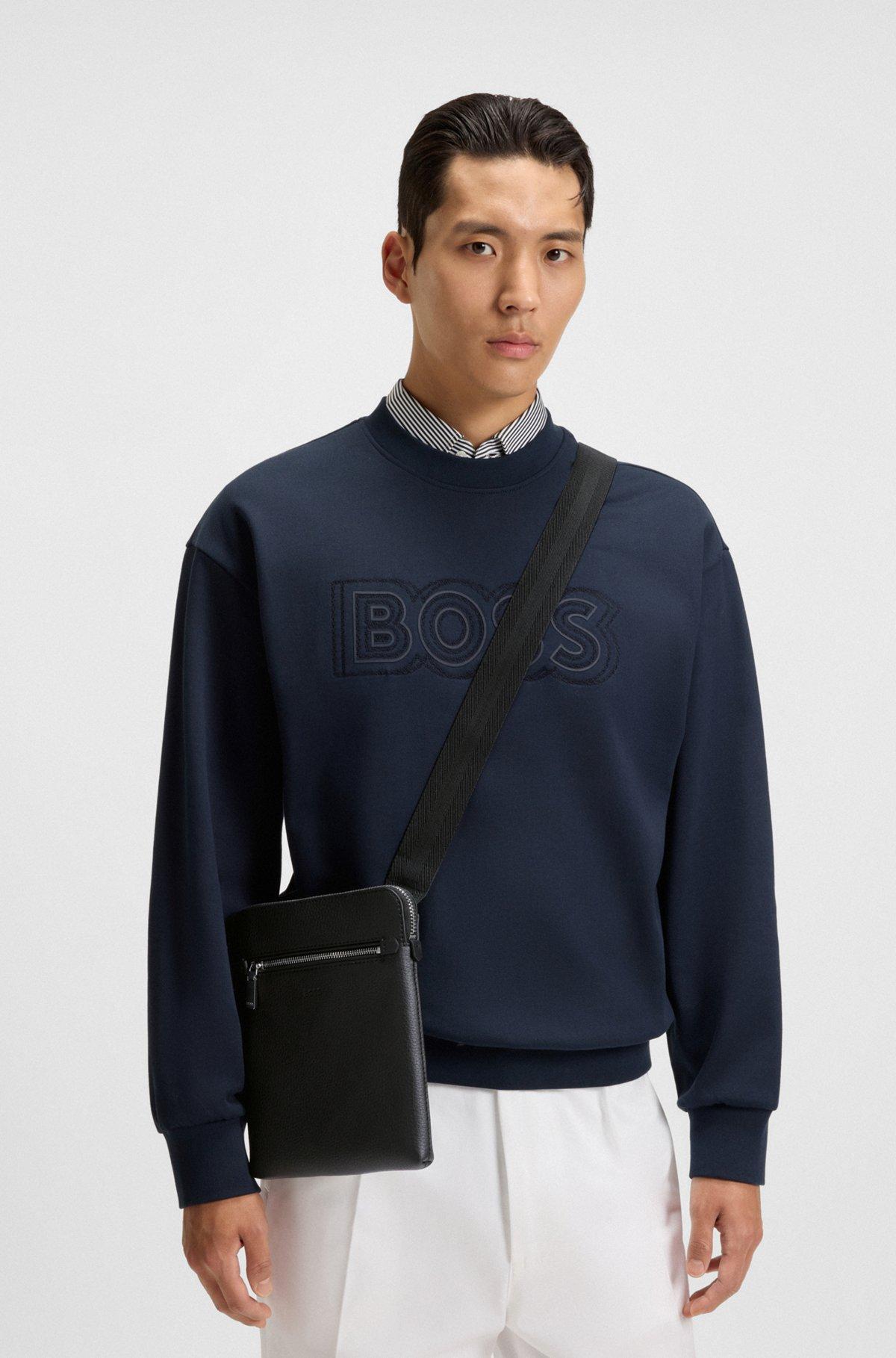 Embossed-logo envelope bag in Italian leather