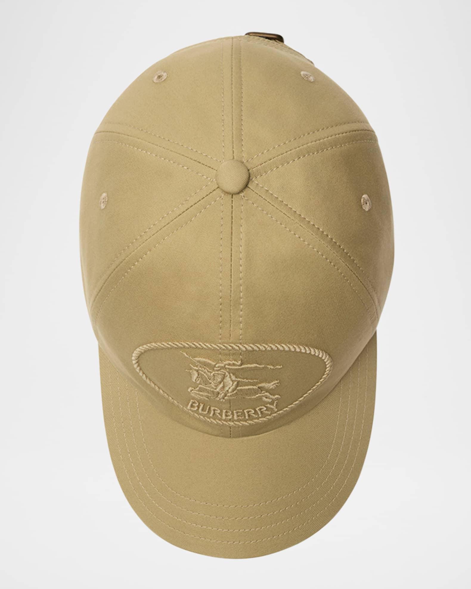 Burberry baseball cap made from water-resistant cotton gabardine and embroidered with the Knight stamp, an archival motif first seen on the brand's bags in the 1980s. Round paneled crown Curved brim Engraved logo lettering on buckle Adjustable buckle closure Cotton Made in Italy