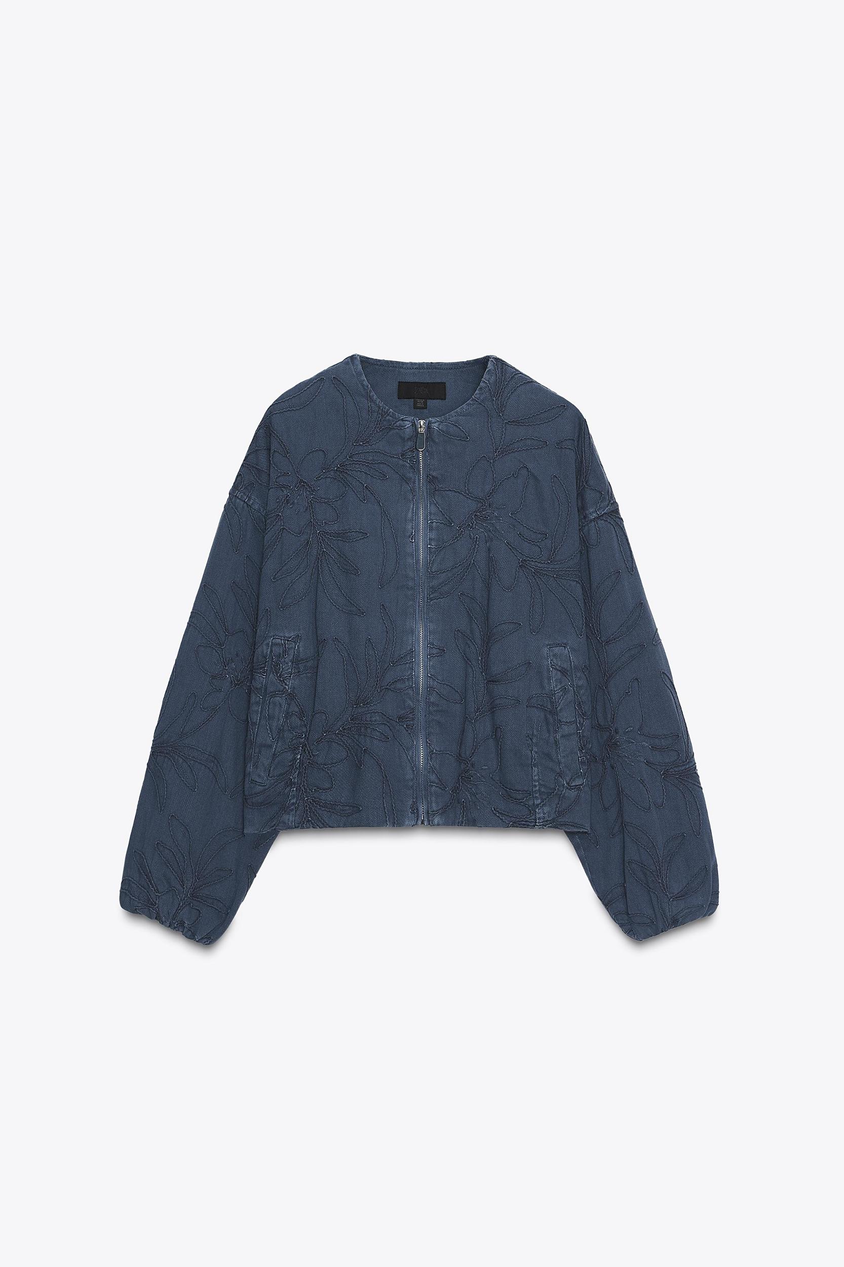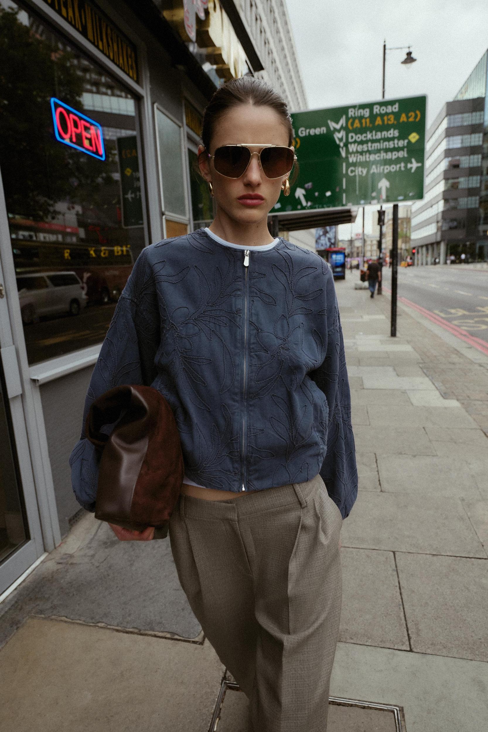 EMBROIDERED FAUX SUEDE BOMBER JACKET