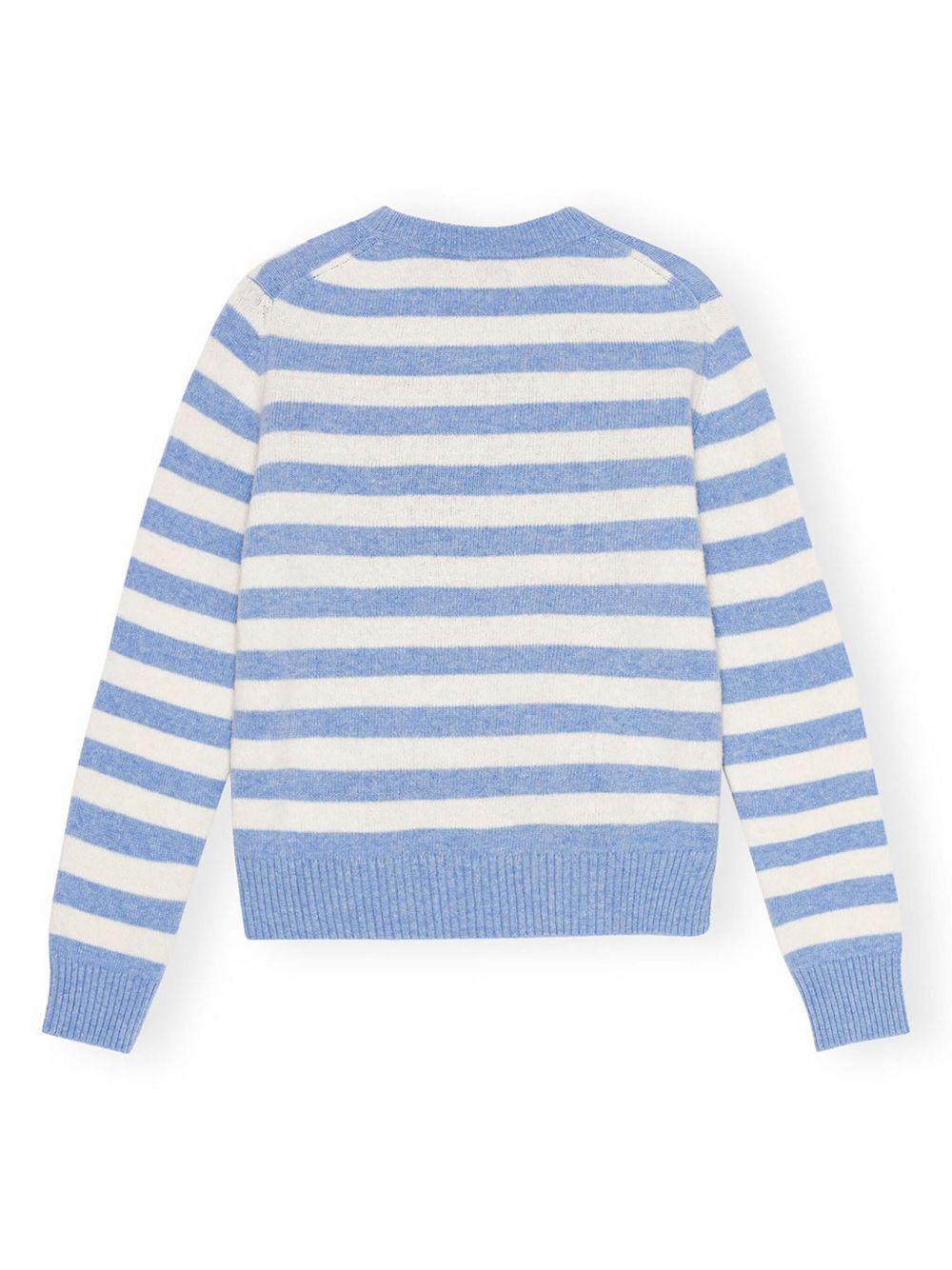 GANNI embroidered long sleeve jumper | Blue | blue | pinstripe pattern | ribbed band collar | long sleeves | embroidered logo to the front | ribbed cuffs and hem | Wool/Recycled Wool/Recycled Polyamide/Polyester/Polyamide | Knitted Sweaters | Knits | Clothing | Women