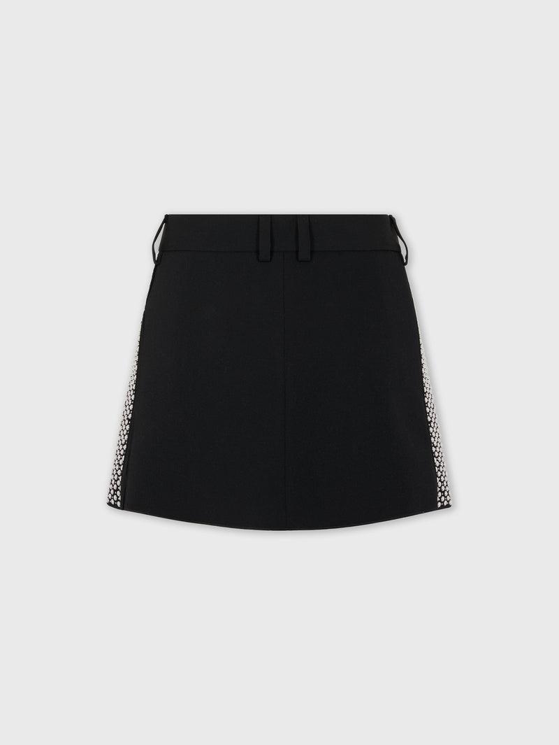 EMBROIDERED MINI SKIRT IN WOOL GRAIN DE POUDRE