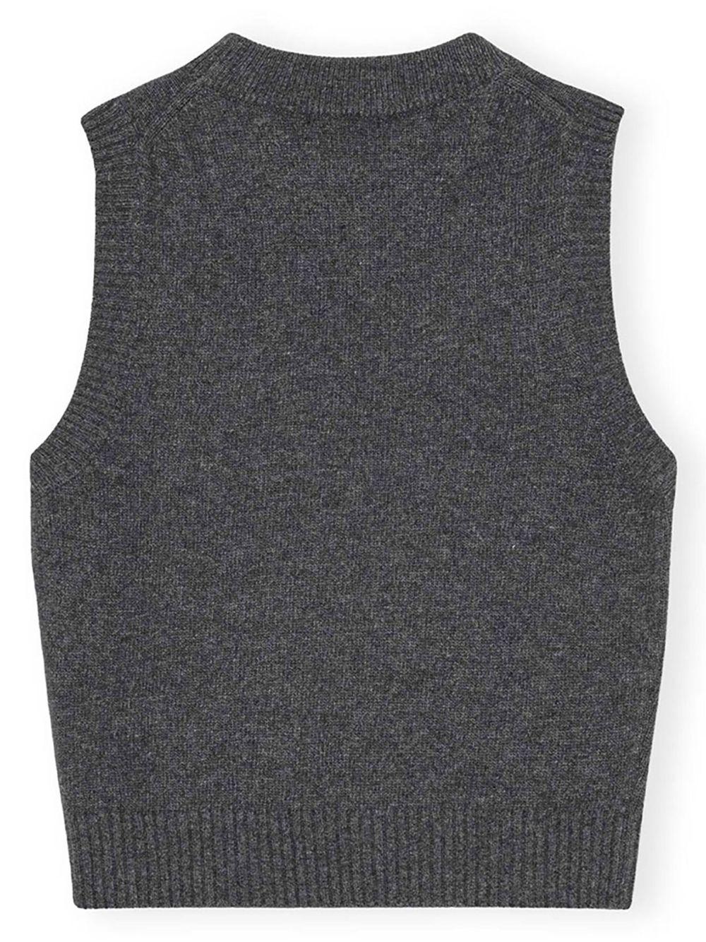 GANNI embroidered sleeveless vest | Grey | Wool/Recycled Wool/Recycled Polyamide/Polyester/Polyamide | Vests & Tank Tops | Tops | Clothing | Women