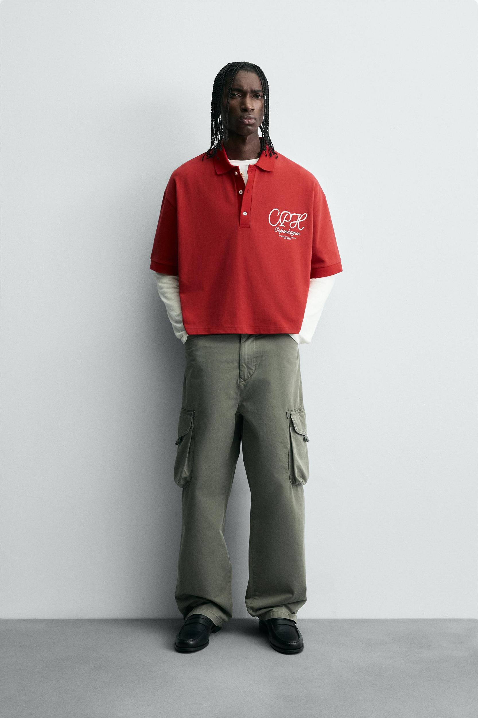 Relaxed fit polo shirt. Lapel collar with front button closure. Contrasting embroidered design on the front.