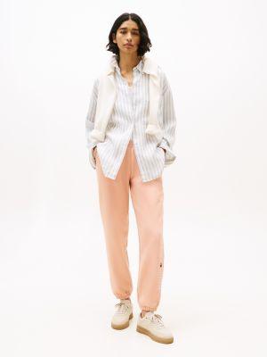 Tommy Hilfiger women's pant. Ideal for fall-to-spring weather wear, our medium-weight sweatpants are made from cotton-blend fleece that feels soft against the skin. Designed with slash side pockets, an elastic waistband with an internal drawstring, and elastic cuffs, this sporty pair features our embroidered logo at the leg.