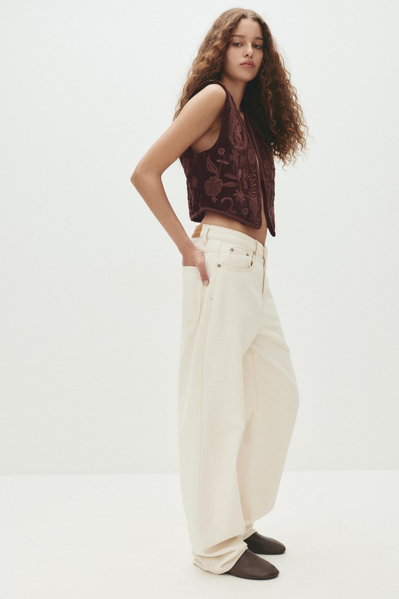 Embroidered velvet vest