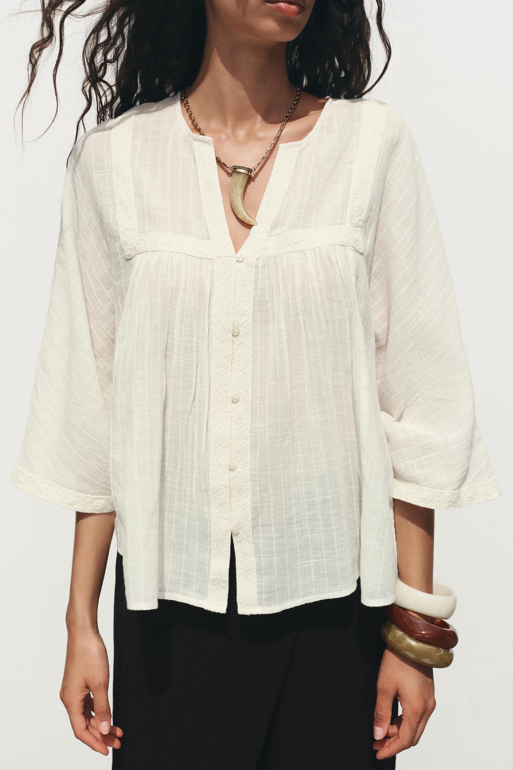 EMBROIDERED WIDE SLEEVE BLOUSE