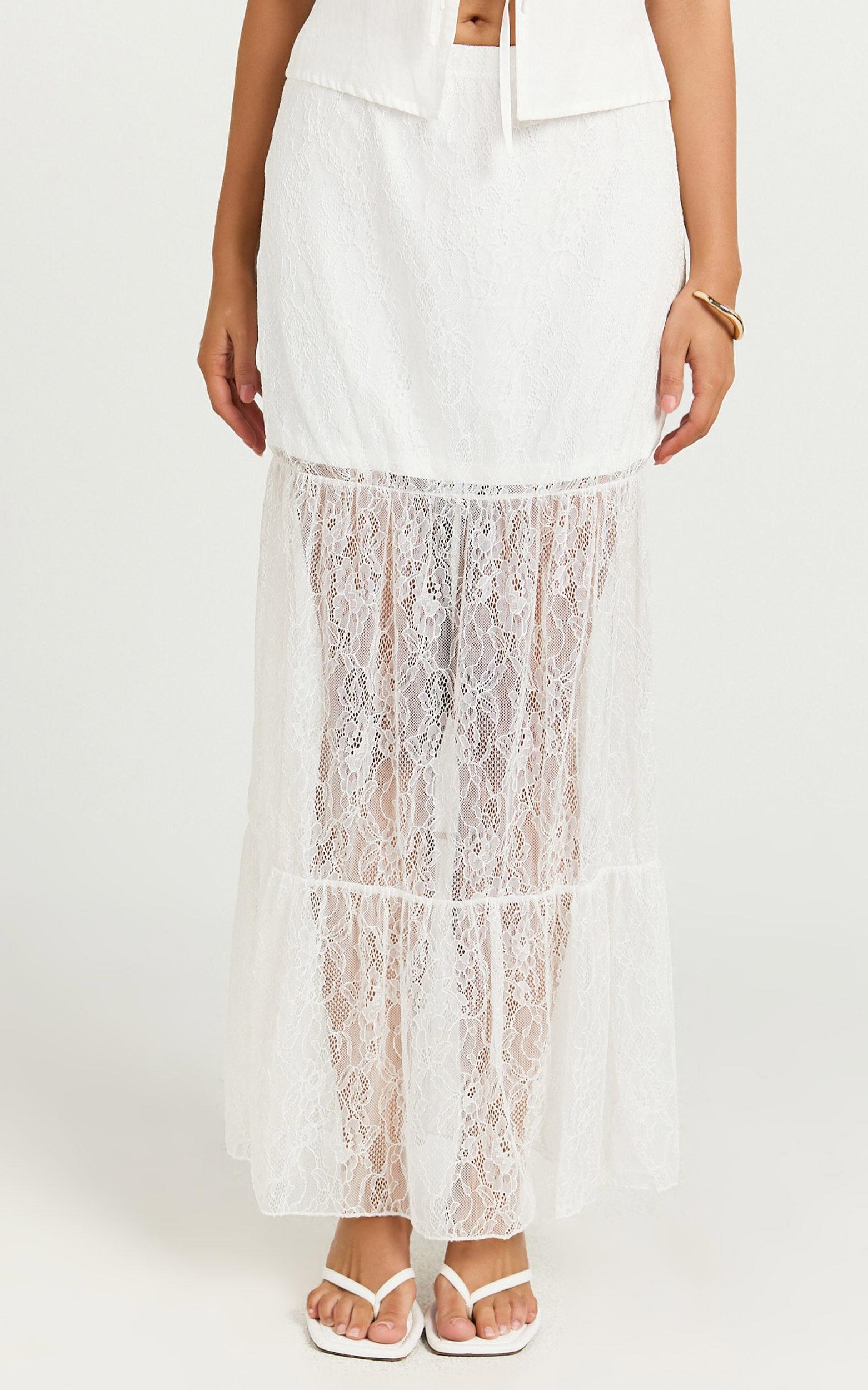 Discover the perfect look in our Emilia Maxi Skirt – a lace gathered panel masterpiece that's as breezy as a summer dream! This stunning white slip skirt is a blend of elegance and playfulness, crafted with care from the finest polyester to give you both comfort and style in one swoop. Whether you're heading to a sun-drenched party day or looking for that ideal piece to elevate your party night ensemble, the Emilia Maxi Skirt has got you covered.Product Details:Slip SkirtLace fabricPolyester materialMaxi lengthParty perfectMaterial and Care100% PolyesterLow / No stretch