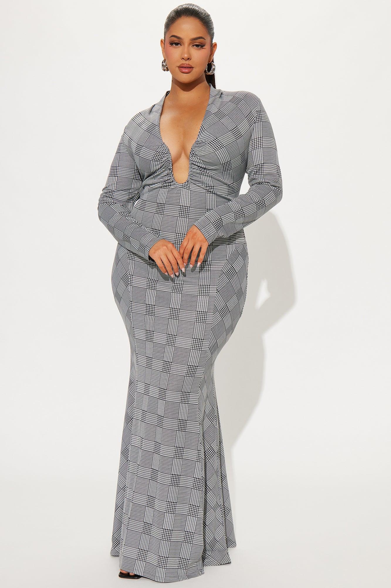 Available In Black/White. Maxi Dress Deep V-Neck w/ Wire Long Sleeve Hidden Back Zipper Stretch Disclaimer: Pattern Placement May Vary. Self: 92% Polyester 8% Spandex Imported California Proposition 65 WARNING: Cancer and Reproductive Harm - www.P65Warnings.ca.gov.