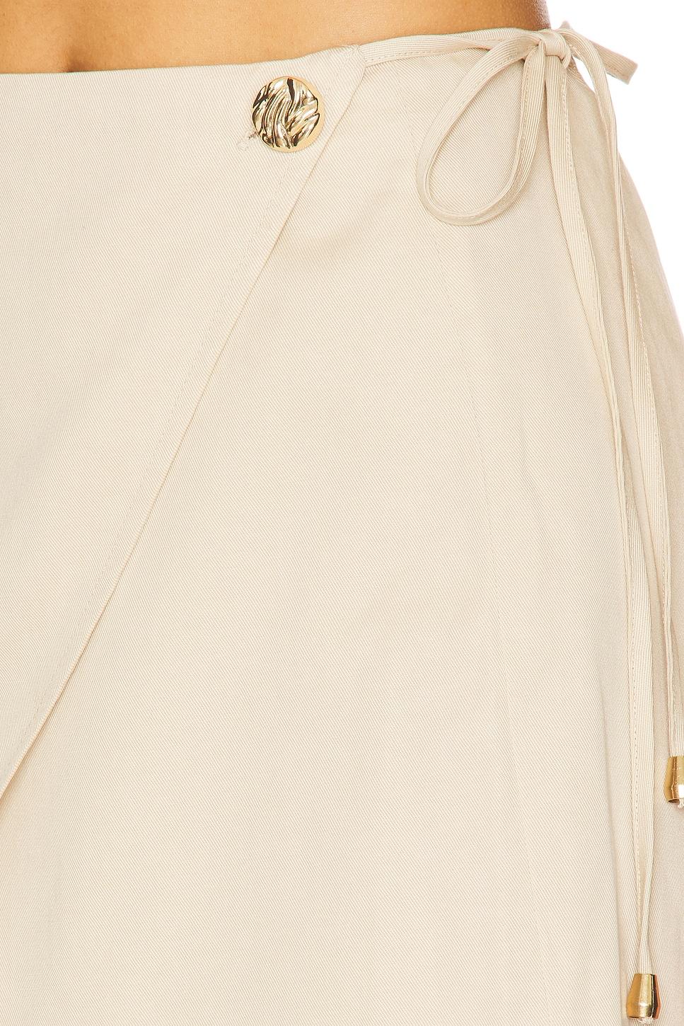 Self: 60% tencel, 40% cottonLining: 100% polyester. Hand wash. Fully lined. Front gold-tone button closure. Wrap around styling with tie closure. Midweight crepe fabric. Item not sold as a set. Waist to shortest hem measures approx 12" and to longest hem approx 14" in length. Made in China. Revolve Style No. SDYS-WQ65. Manufacturer Style No. SFSK957.