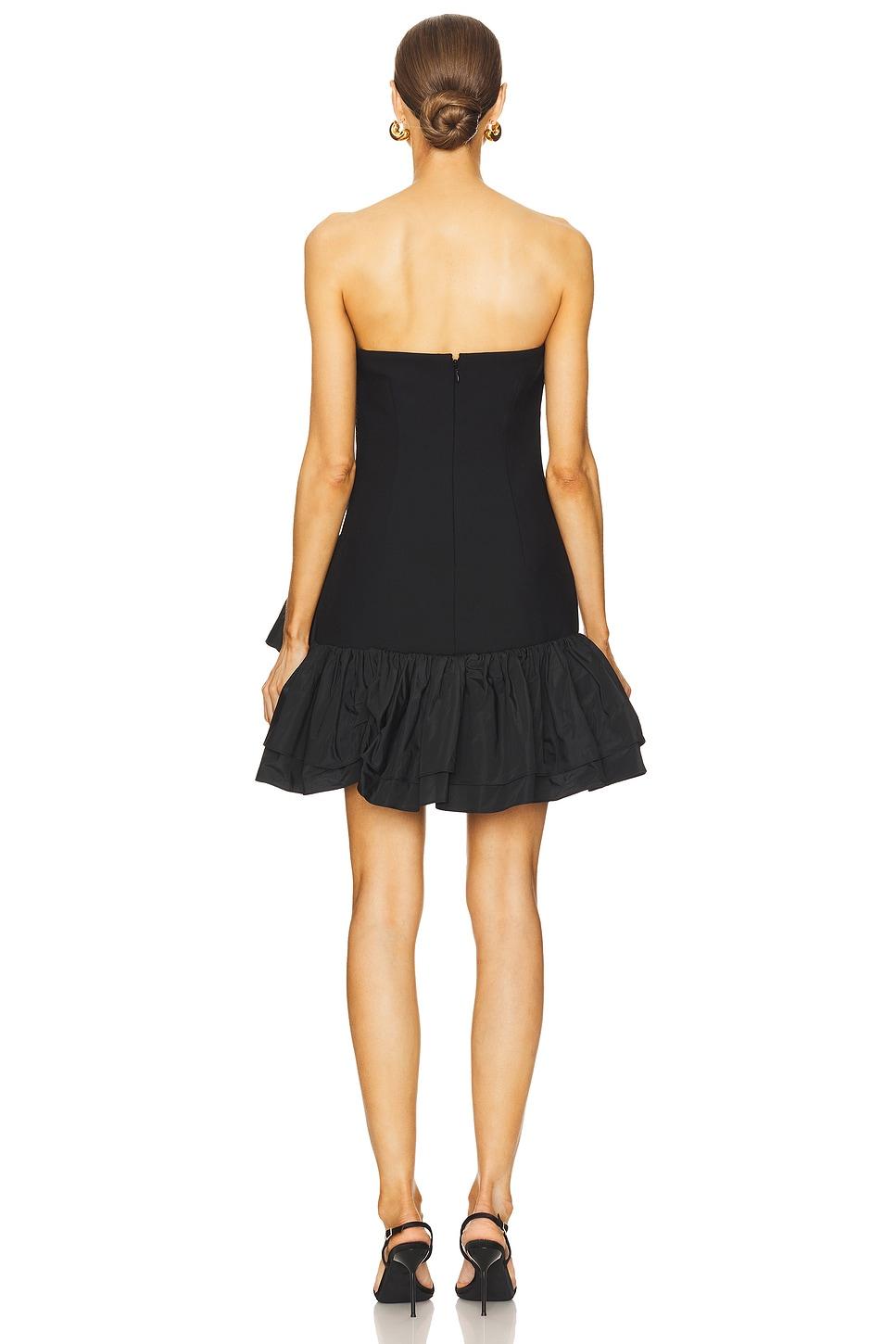 Self: 54% polyester, 39% viscose, 7% elastaneContrast fabric: 71% recycled poly, 29% polyesterLining 1: 100% polyesterLining 2: 83% nylon, 17% elastane. Made in China. Dry clean only. Fully lined. Hidden back zipper closure. Built-in shelf bra with hook and eye clasps. Asymmetrical ruffled hem. Neckline to hem measures approx 27" in length. Revolve Style No. CINR-WD419. Manufacturer Style No. ZD28161062Z.
