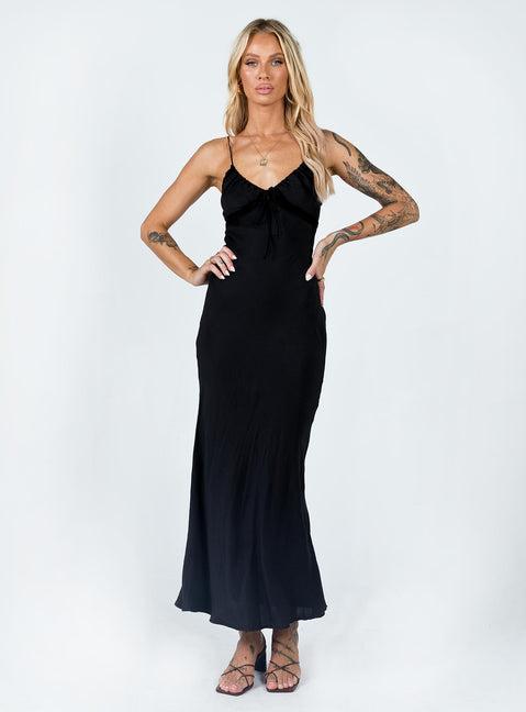 Maxi dress Princess Polly Exclusive 100% polyester Length of size US 4 / AU 8 shoulder to hem: 139cm / 54.7 Emma-Leigh is wearing a size AU 8 / US 4 Silky material Elasticated shoulder straps Knitted lace detail Tie fastening at bust Shirred back panel Invisible zip fastening at side Non-stretch Fully lined