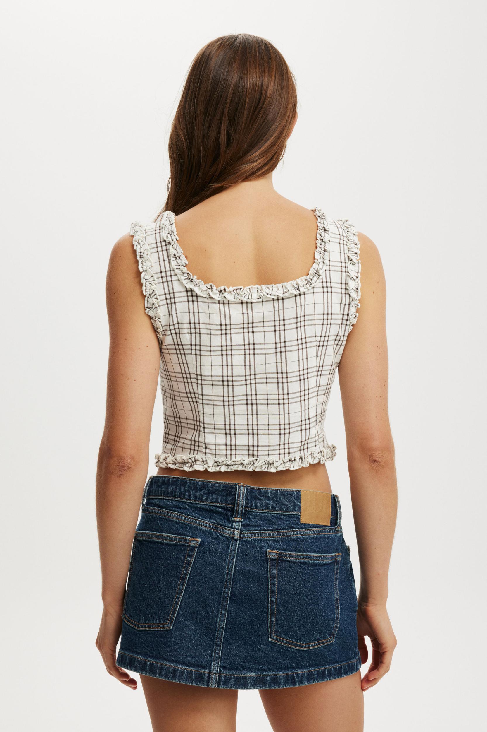 Button up Cami ,Ruffle detailing ,Non-Stretch material ,Sustainable fabric attributes ,Slim Fitting Main: 100% Cotton.