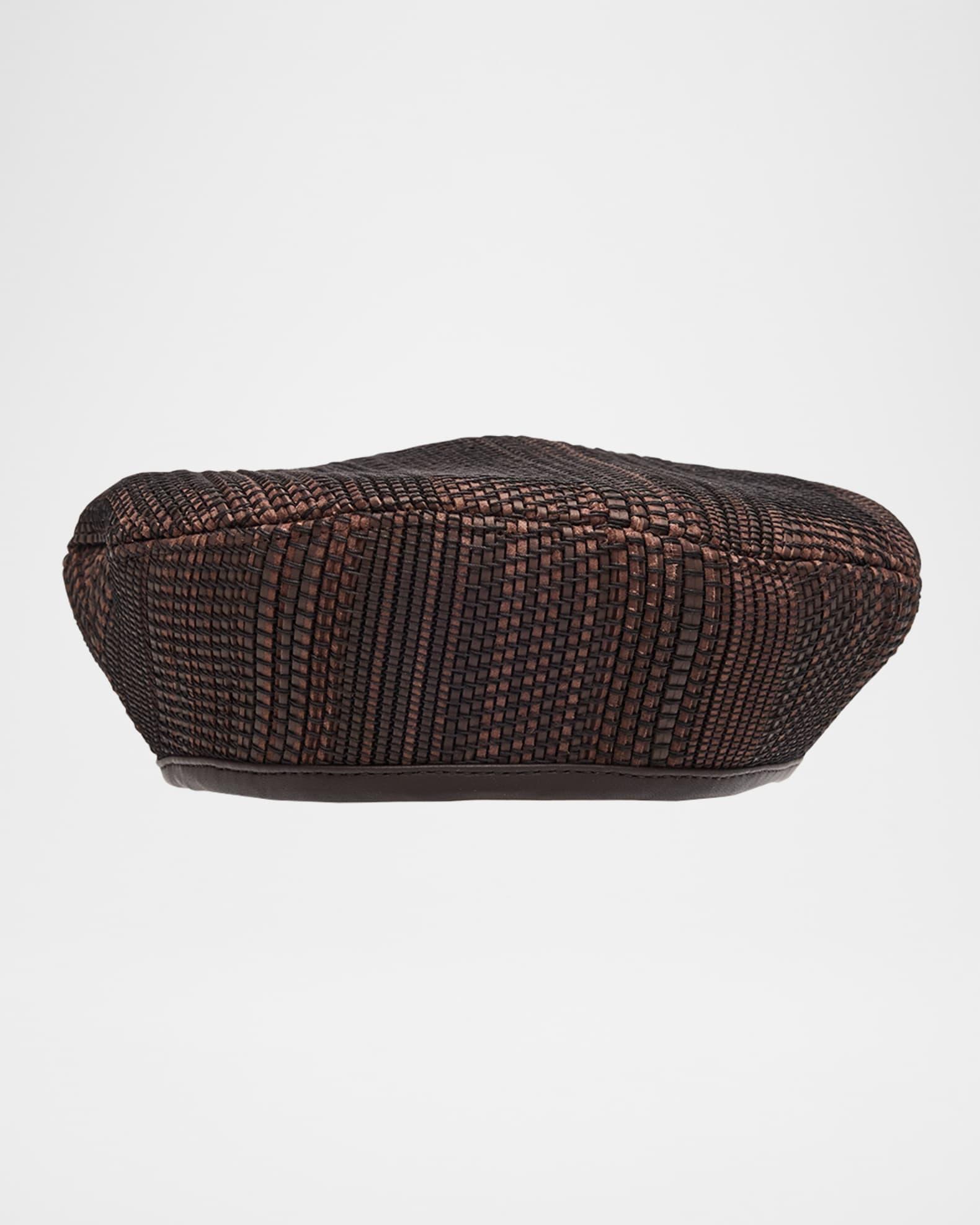 Loro Piana "Emily" woven beret with leather trim One size fits most Item Weight (Lbs.): 0.3 Leather Professional cleaning recommended Trim: Leather Made in Italy