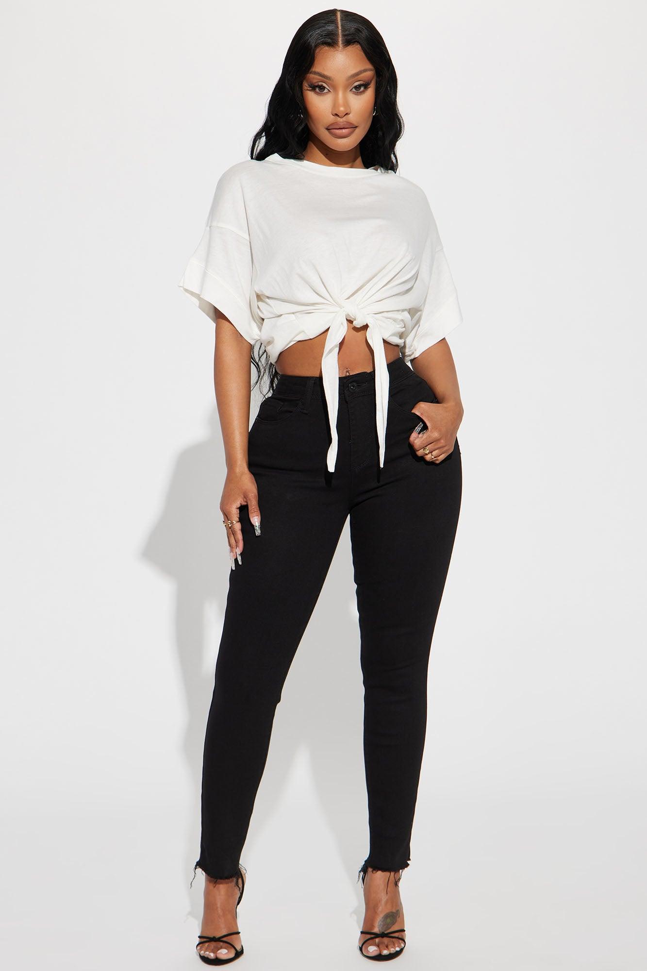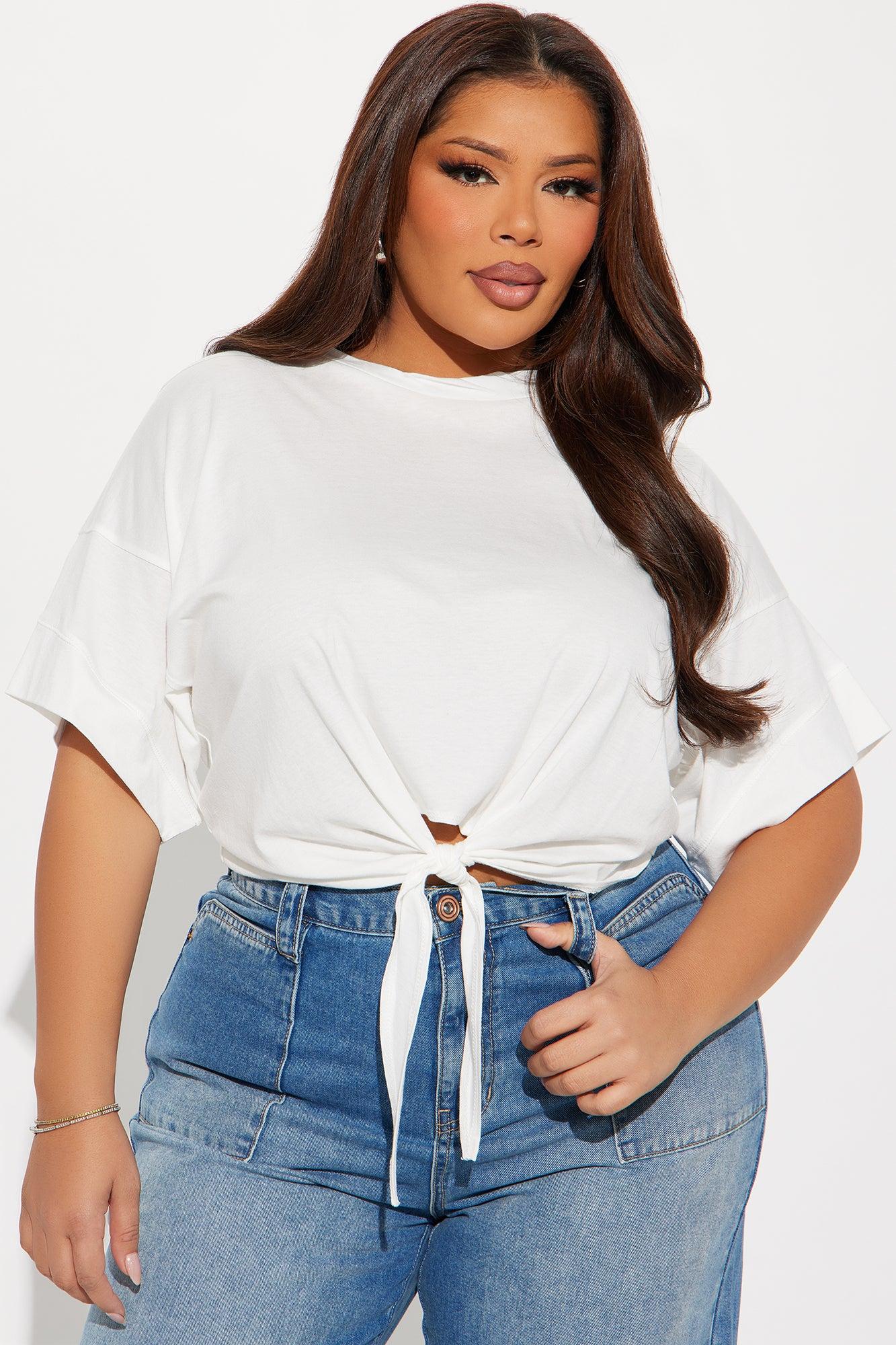 Available In White. Short Sleeve Crew Neck Tie Front Detail Stretch 60% Cotton 40% Rayon Imported