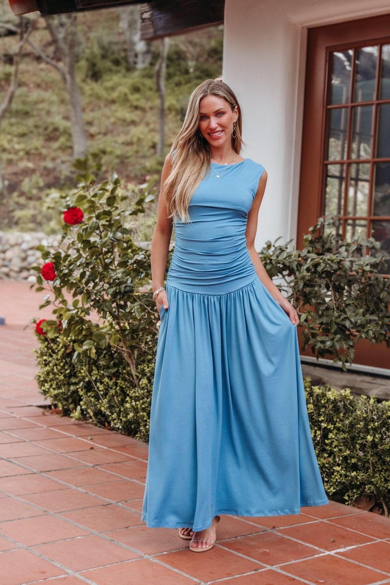 Our Emma Ruched Drop Waist Maxi Dress is the perfect blend of comfort and effortless style! Designed with an ultra-soft and stretchy fabric, this dress features a sleeveless silhouette with a flattering scoop neckline. The drop waist design and ruched side detail add a touch of modern elegance, while the side pockets provide everyday functionality. Made from a lightweight spandex blend, this dress is ideal for casual outings, weekend brunches, or travel days. Pair it with sneakers for a laid-back look or dress it up with heels and a denim jacket. Also available in classic black!