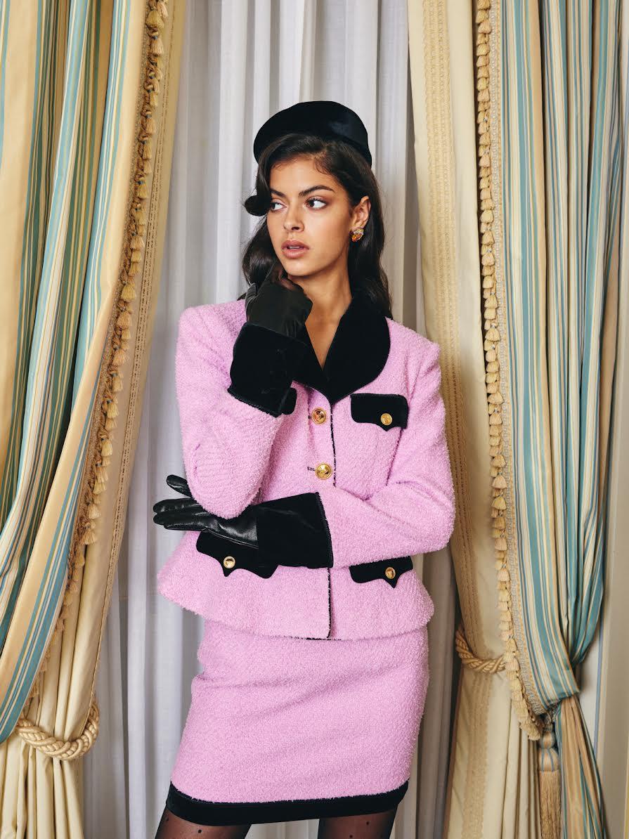 Step out in style with the Emma Blazer and matching Emma Skirt. The velvet stitching offers a warm, upscale look while the retro style provides a timeless silhouette.