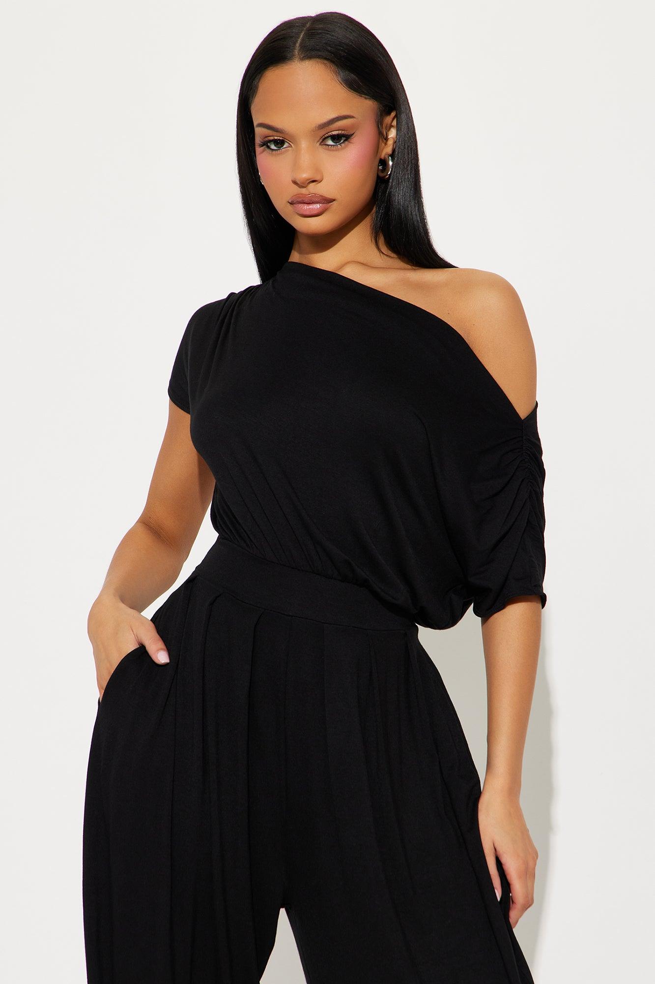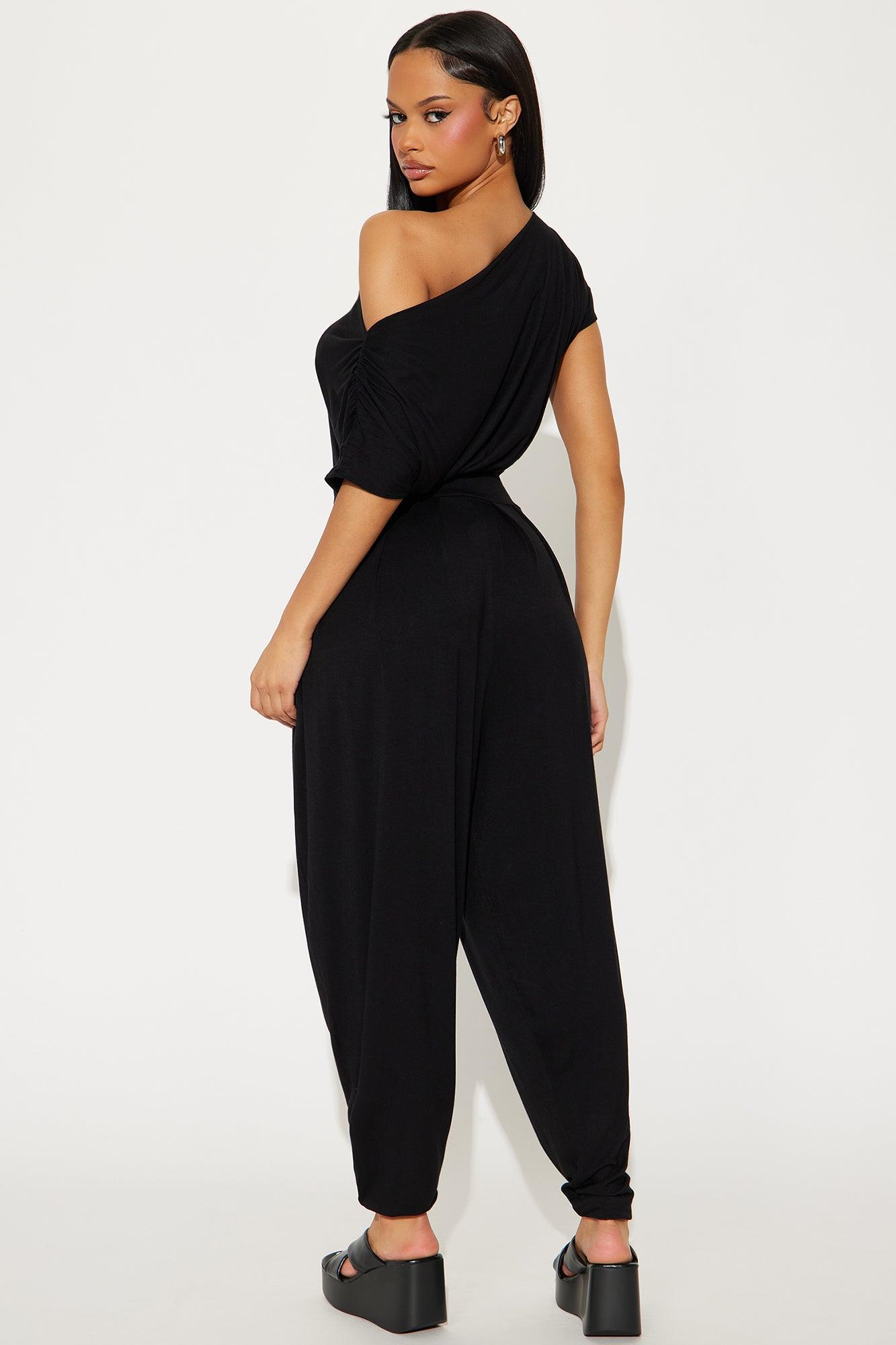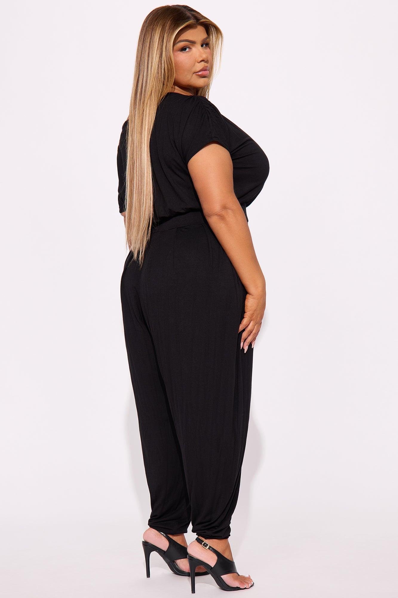 Emmaline Short Sleeve Jogger Jumpsuit - Black