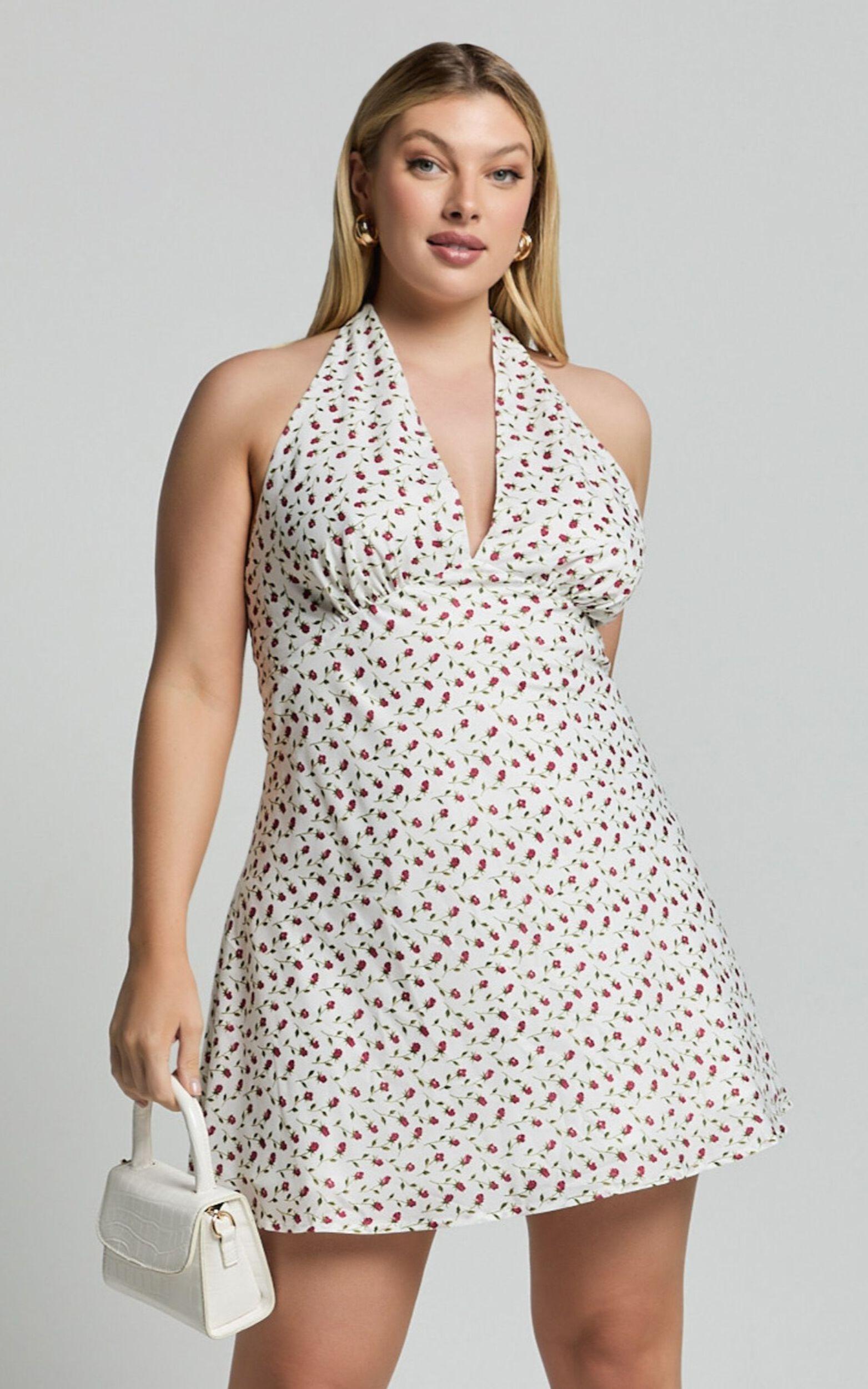 Make a statement in the Emmett Mini Dress, a stunning Tie Halter Neck Low Back Dress designed to celebrate your unique style and empower your every move. Crafted from a lightweight woven material, this sleeveless mini dress is not just a piece of clothing; it's a fashion-forward statement infused with the breezy vibes of a perfect party day. The delicate white floral print brings a touch of freshness and femininity that's absolutely irresistible.Product Details:Mini A-line dressHalter necklineSleevelessZips detailInner liningLight weight wovenPolyester fabricParty day perfectSize and FitSize S / 8 length: 82.5cm / 32.48inMaterial and CareMain Fabric: 100% Polyester Lining: 90% Polyester, 10% SpandexLow Stretch