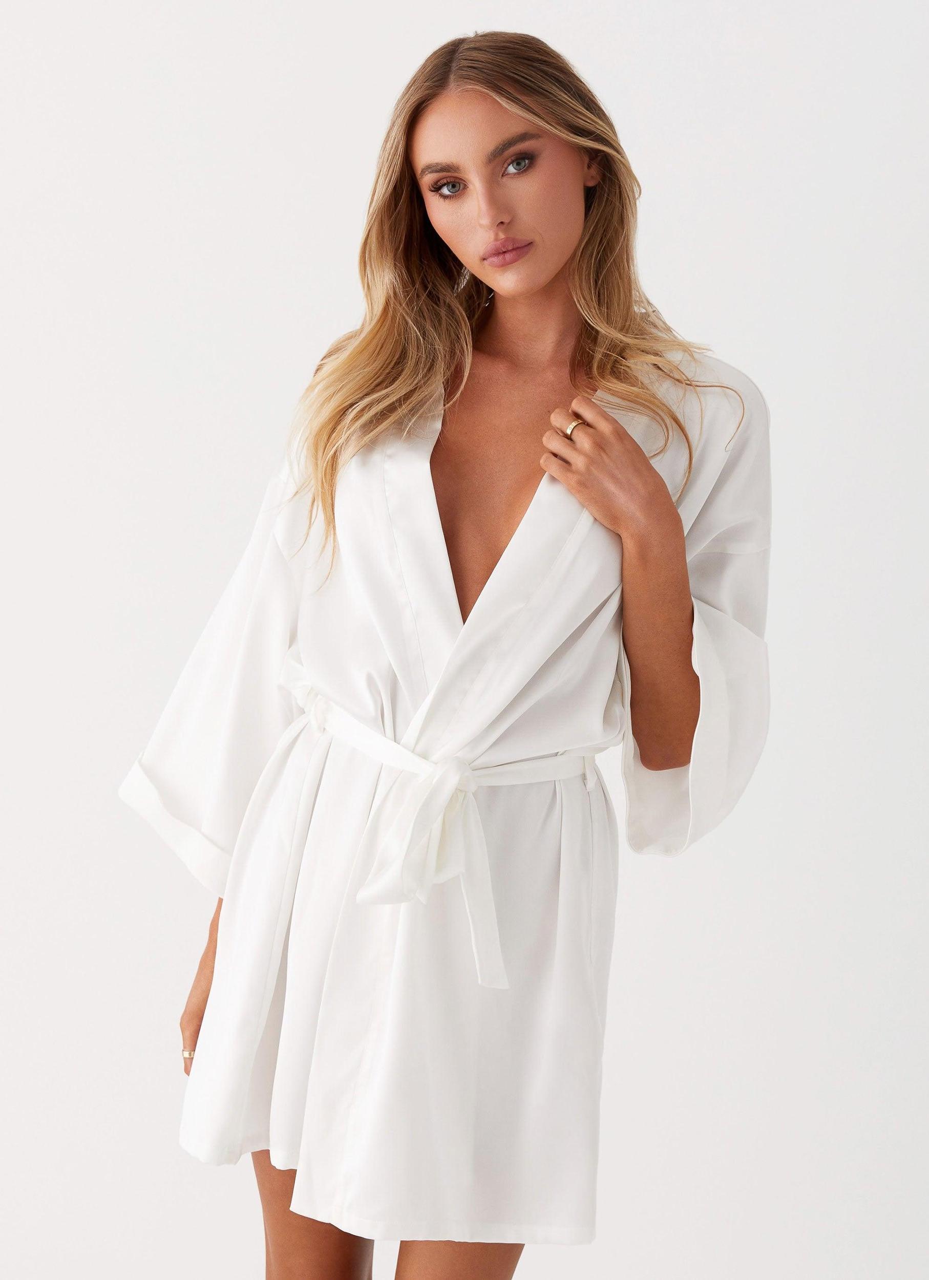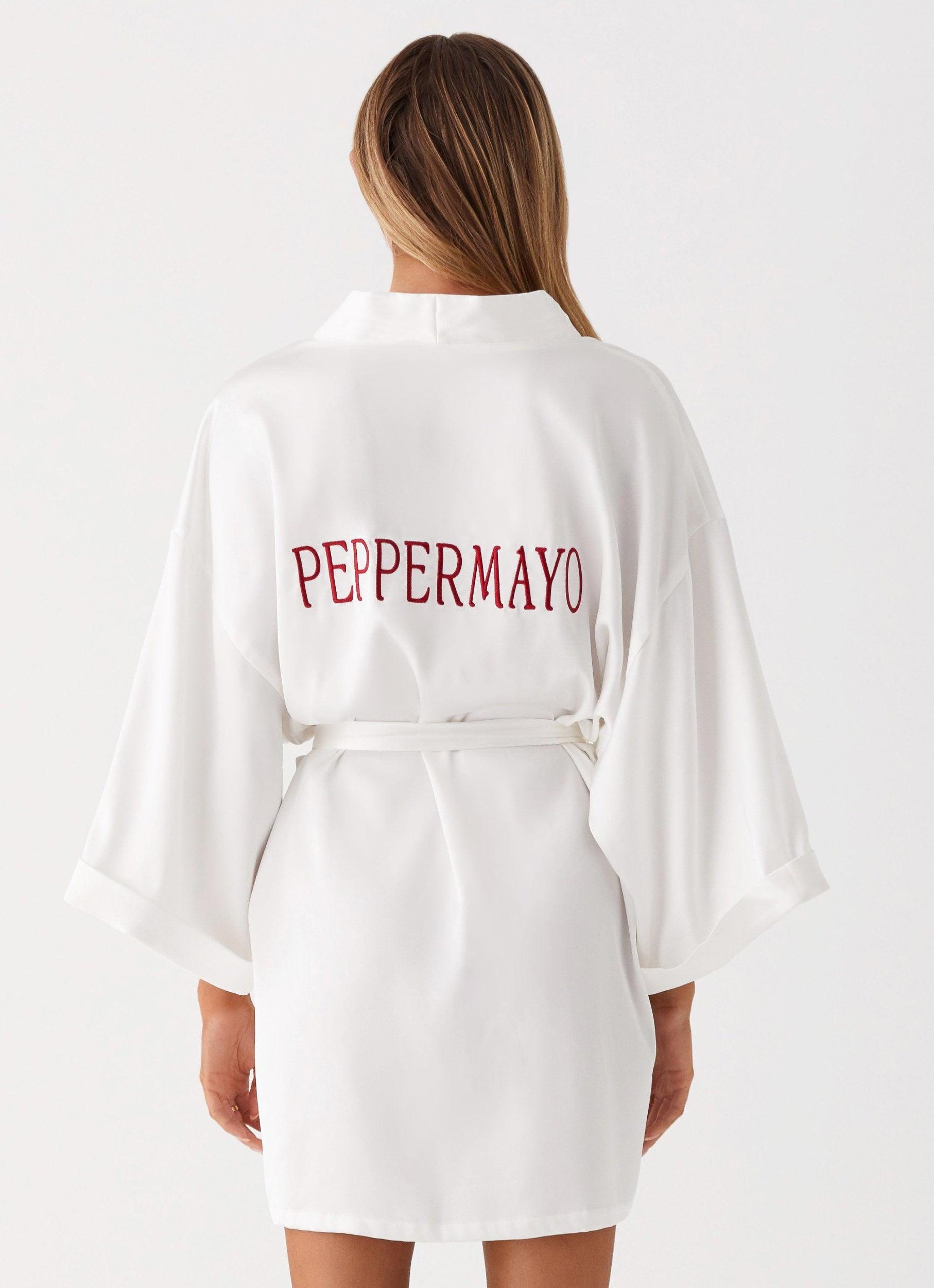 Peppermayo Exclusive Wrap yourself in luxury with the Emmy Satin Robe. Featuring a tie belt around the waist for a flattering silhouette, an oversized fit for comfort, and an unlined design that enhances its silky texture, it's perfect for those who love to indulge in effortless elegance and comfort at home. - Midi length- Tie belt around waist- Oversized fit- Unlined- 100% Polyester Size AU 8 / US 4 garment measurements: Bust: 130 cm / 51.2 inLength: 85 cm / 33.5 inHem: 136 cm / 53.5 in Summer is 166cm and wearing S-M