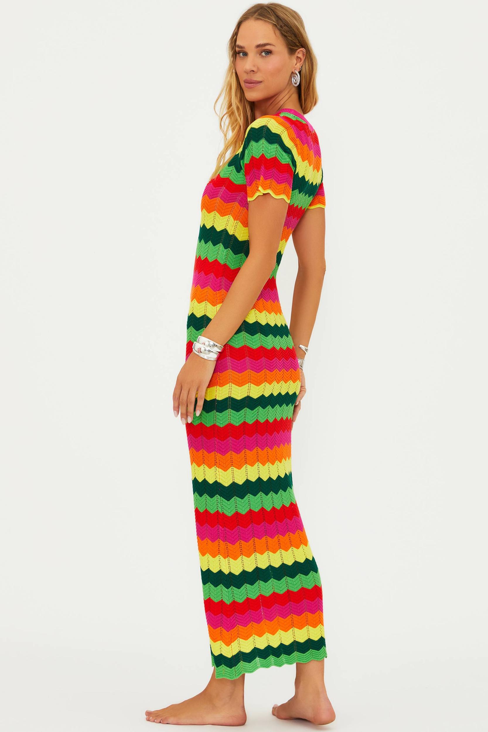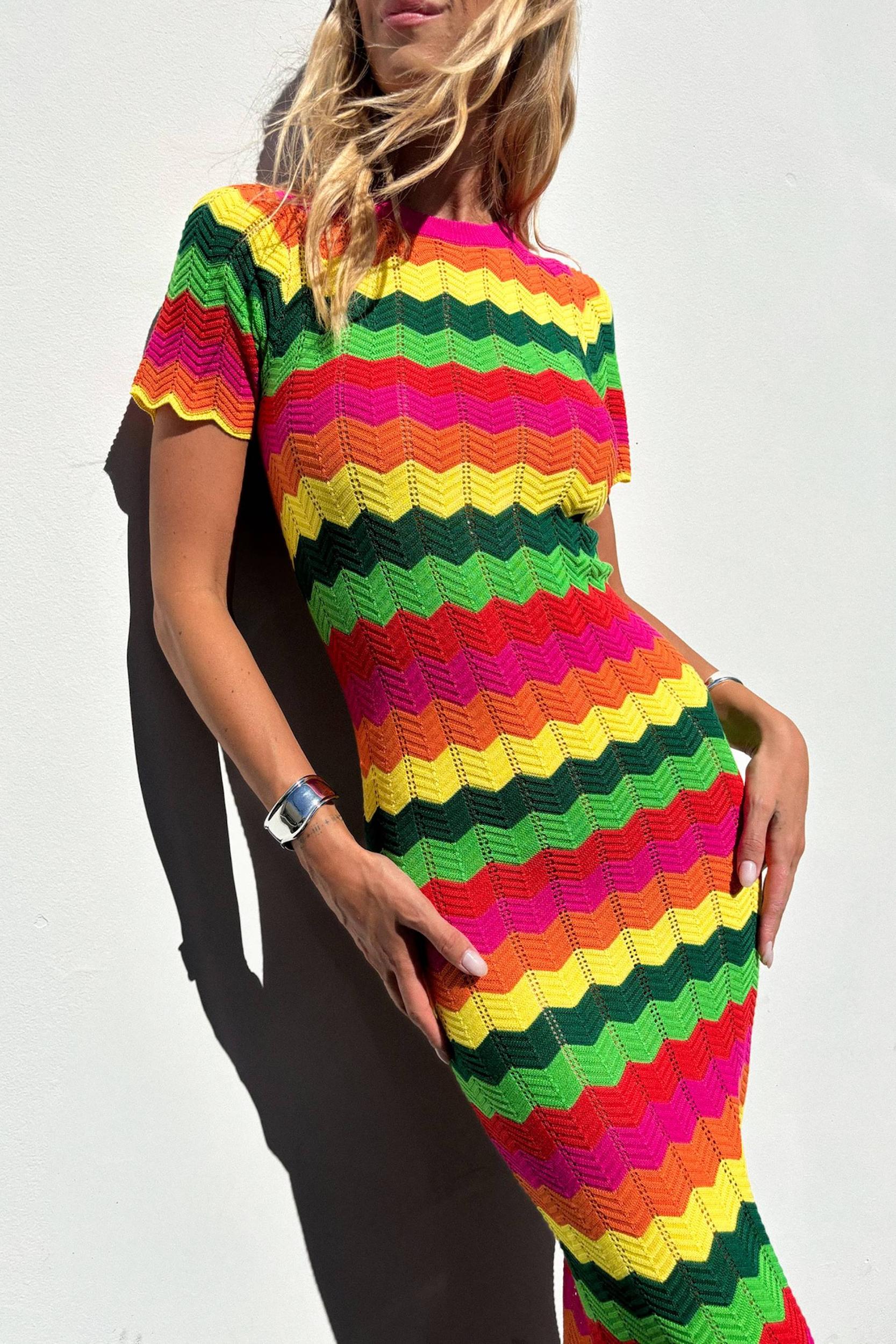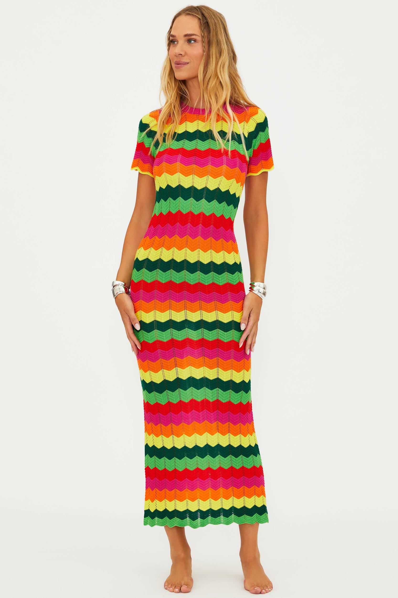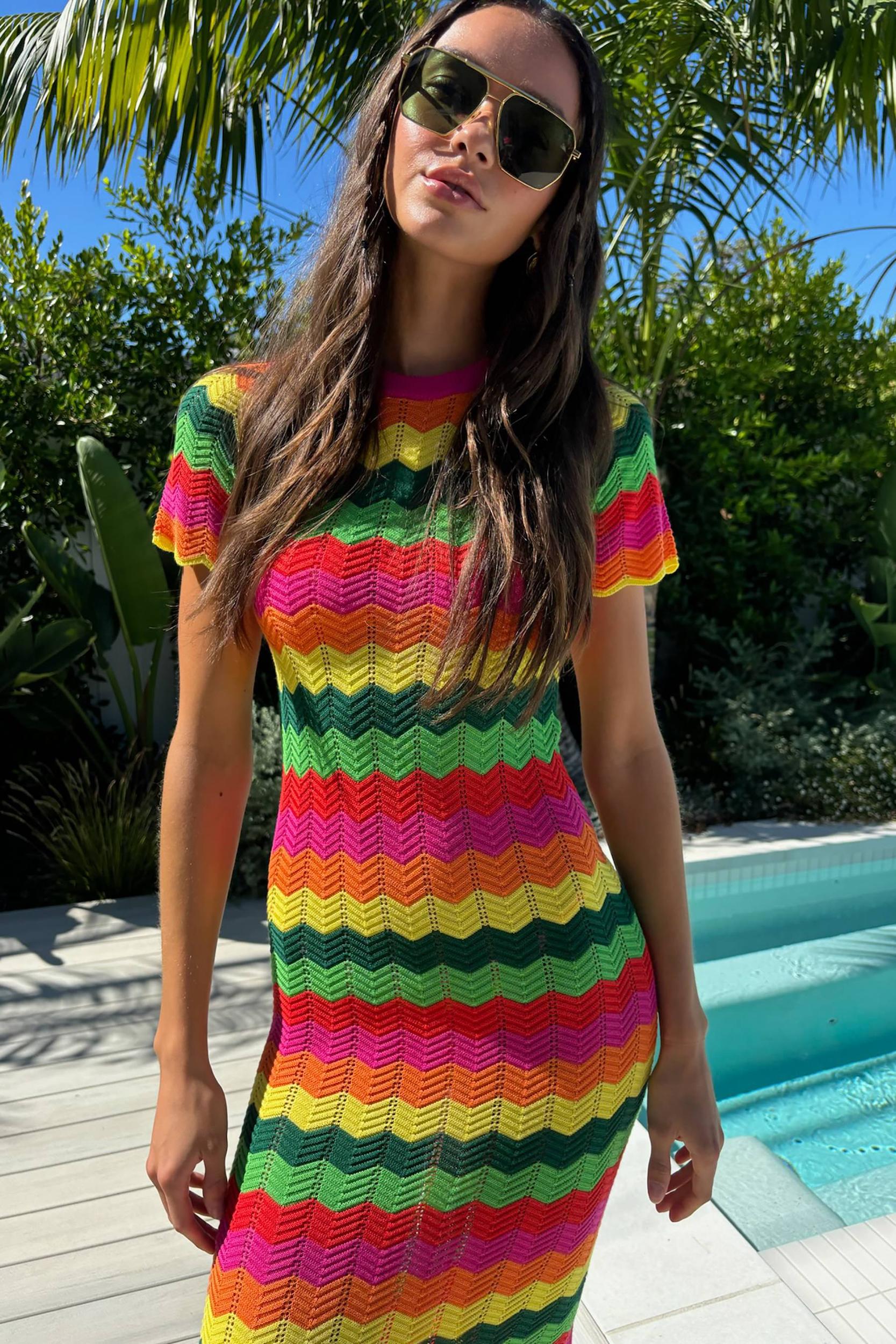 Open knit 100% Viscose Cap sleeves Maxi length Model is wearing size small