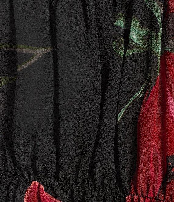 Emory Park Floral Print V-Neck Button Front Long Sleeve Cinched Hem Blouse