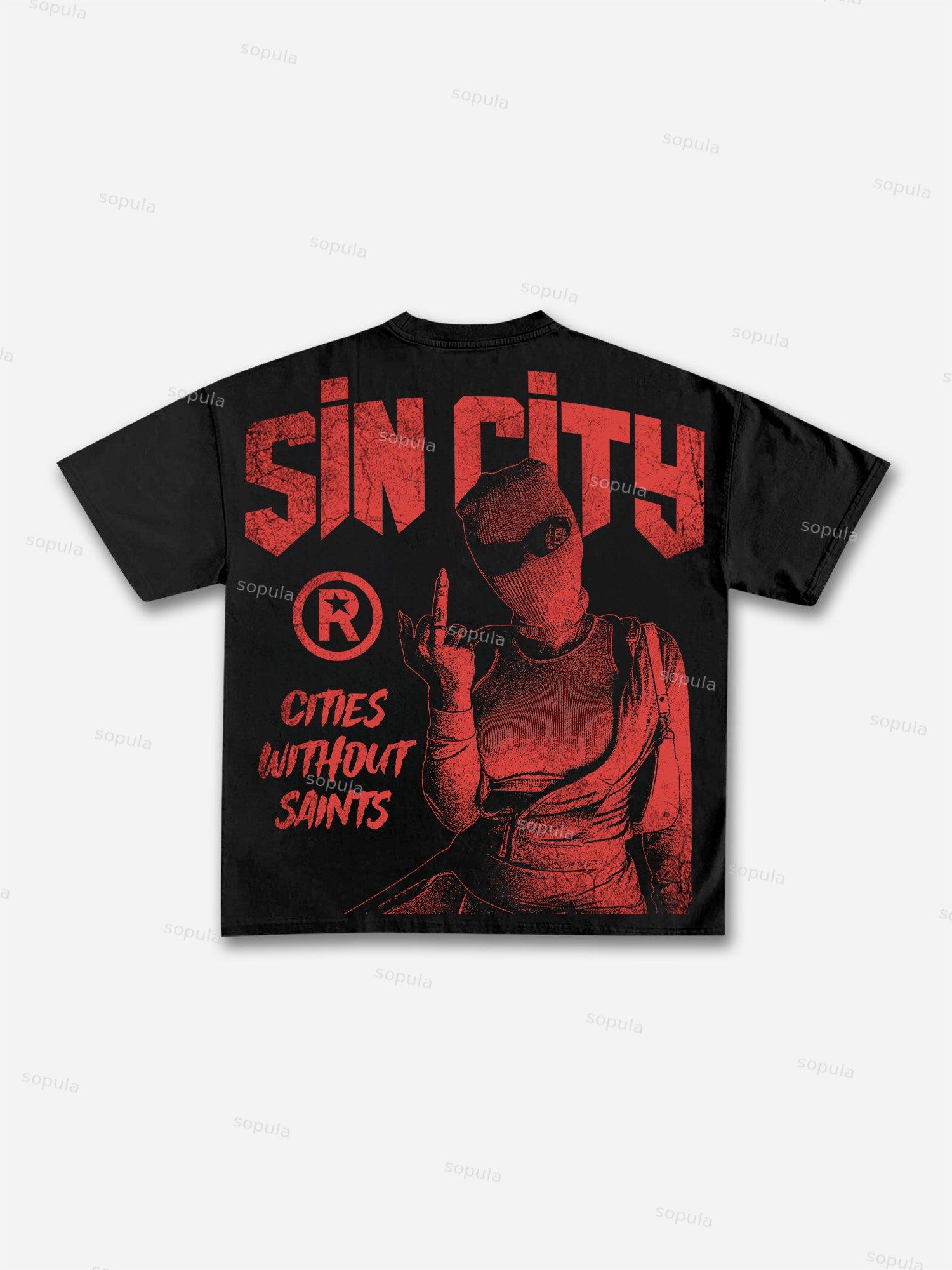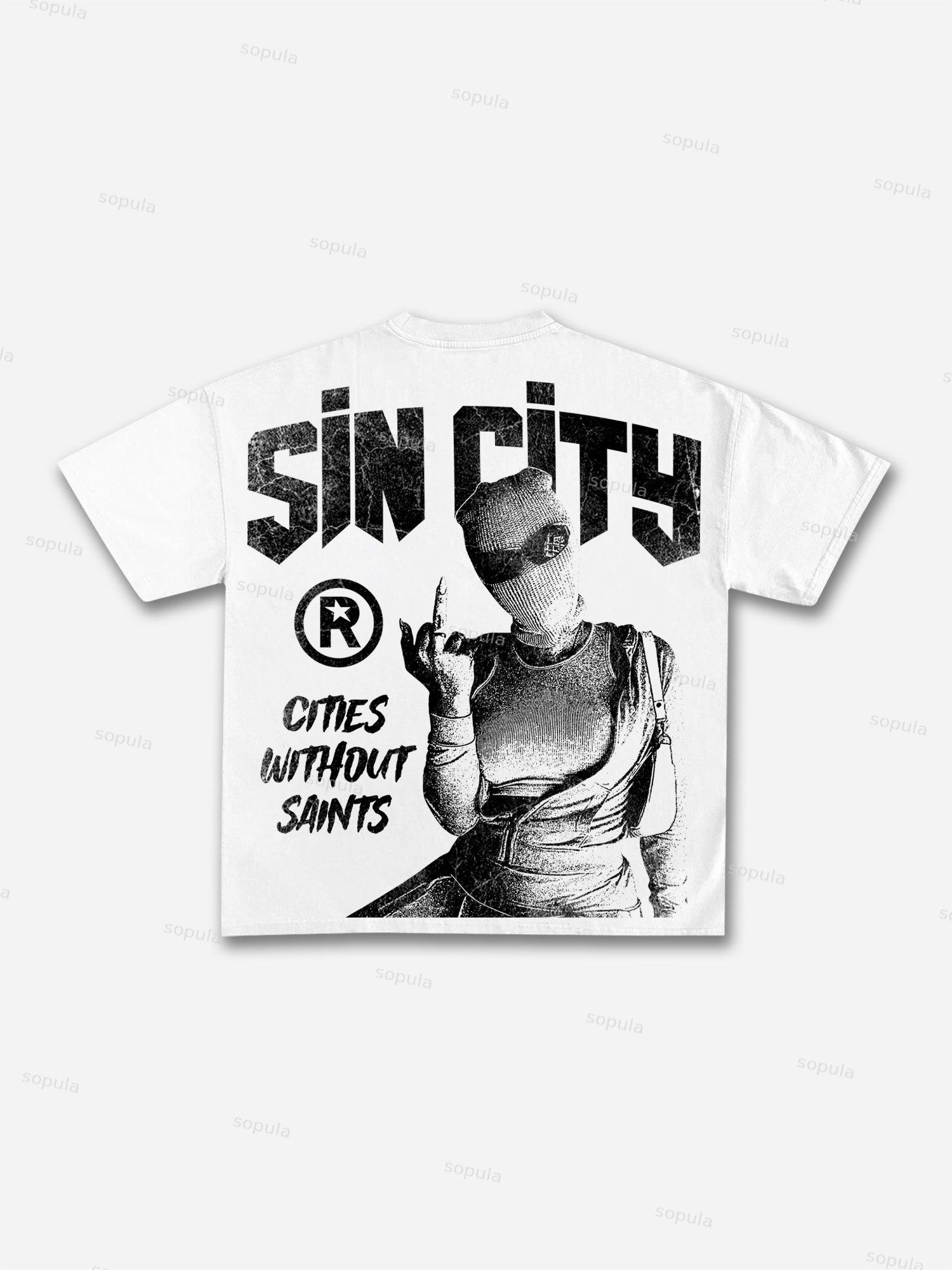 Street Graffiti Cartoon Character Graphic Cotton T-shirt