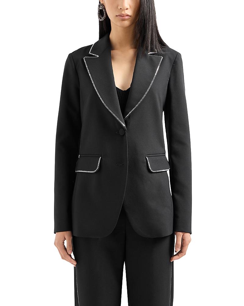Designed with zipper trim, Emporio Armanis tailored single-breasted blazer is crafted of techno cady. Peak lapels Long sleeves Button front Waist flap pockets Lined Polyester/viscose/elastane Dry clean Imported SIZE & FIT About 27 from shoulder to hem Model measurements: 510 tall Model is wearing a US size 4. Modern Collections - Branded Separates > Emporio Armani > Saks Fifth Avenue > Barneys. Emporio Armani. Color: Black. Size: 16.