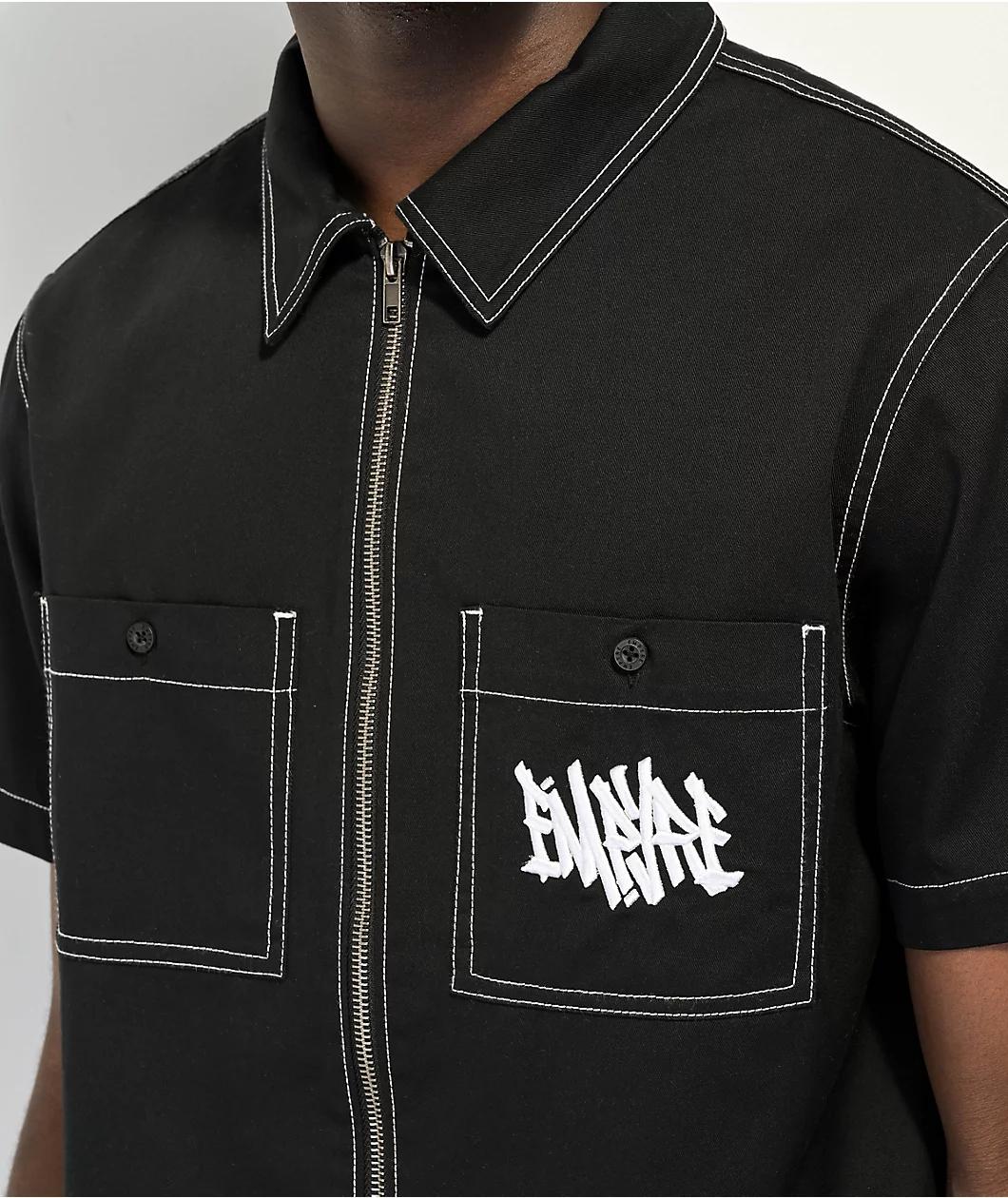 Empyre brings the Amplify shirt in a solid black colorway with a full zip closure and a short sleeve construction, showing off the brand name left of chest in white embroidery for contrast. This short sleeve shirt adds style with white stitching throughou