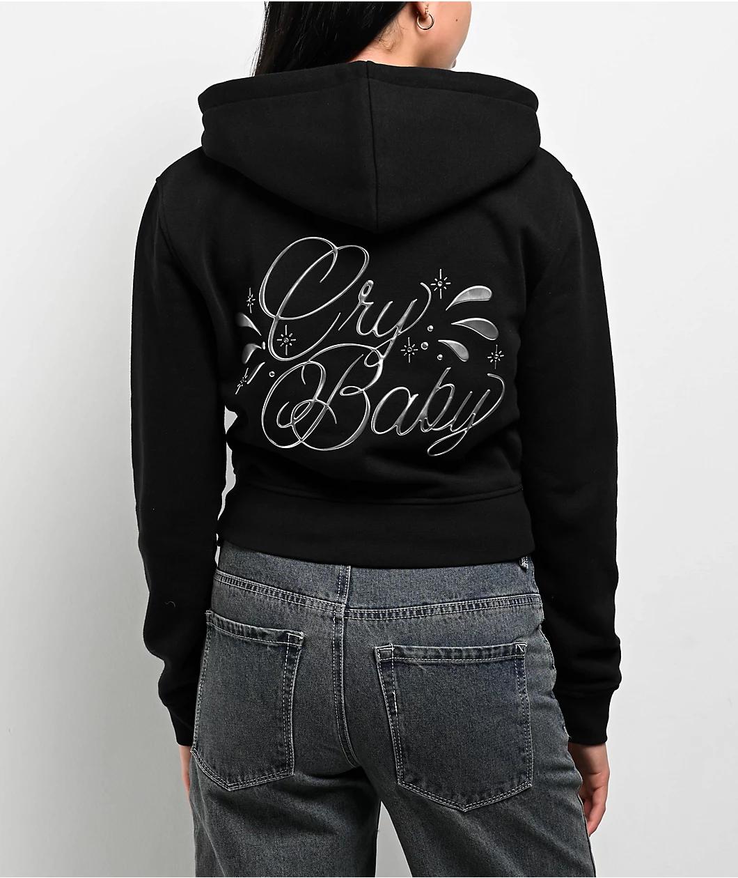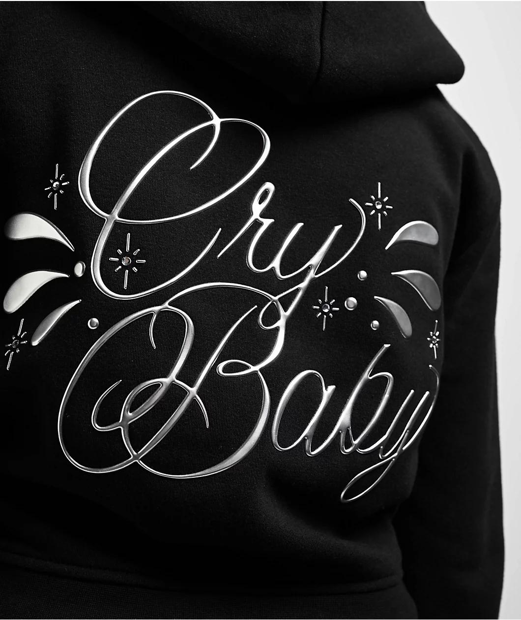 Delivered by streetwear brand Empyre in a versatile black colorway, the Angel hoodie features a full zip closure and flashy rhinestone detailing. Showcasing cursive branding on the left chest, the skimmer-length casual sweatshirt employs dual slash