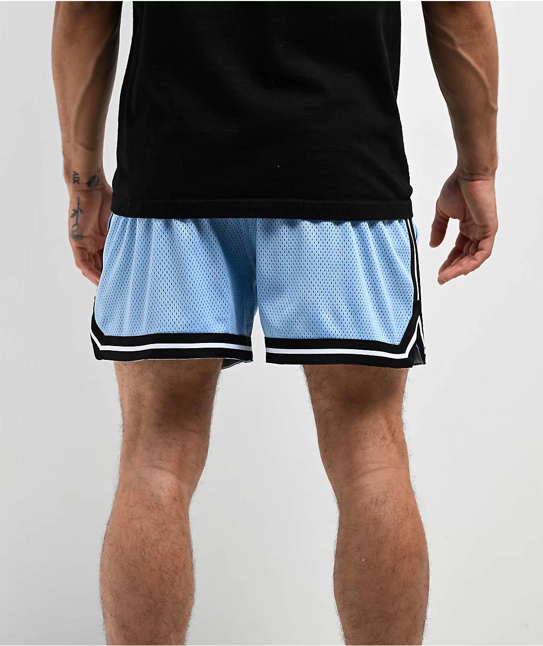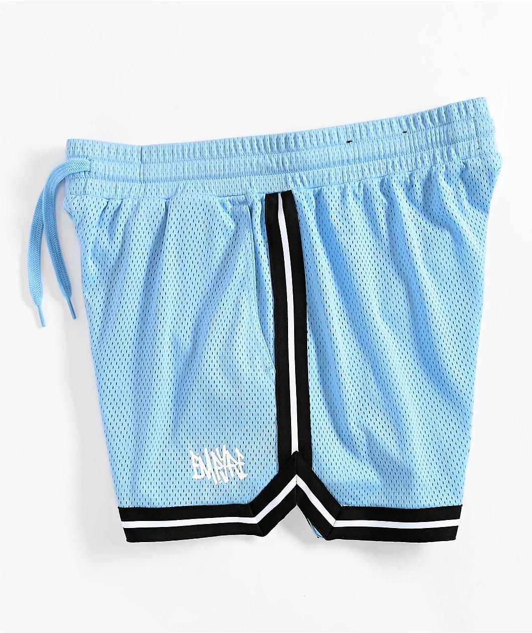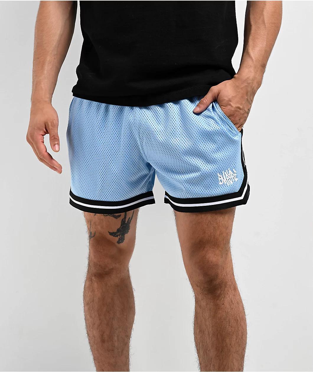 Offered in a light blue colorway with a breathable polyester mesh construction, Empyre presents the Bounce shorts with an athletic silhouette -featuring graffiti branding on the left leg and striped patterns on the seams. Employing dual slash hand po