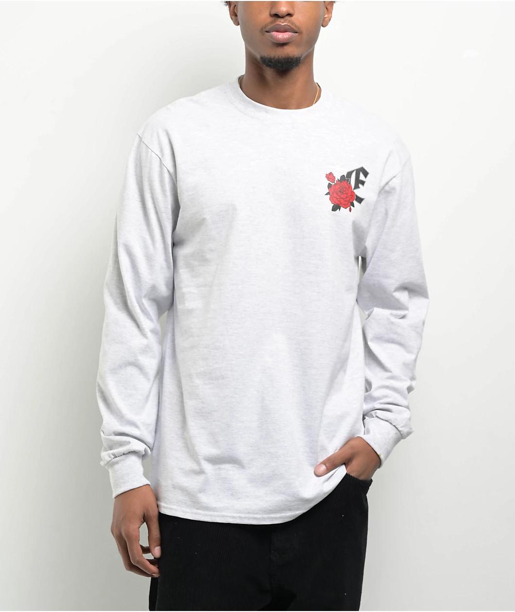 Welcomed by Empyre in an "Ash" grey hue, the Collegiate Metal long sleeve t-shirt delivers tattoo-inspired graphics printed on the left chest and back with a 100% cotton construction. Featuring a rose with the letter "E" on the front, the back of the